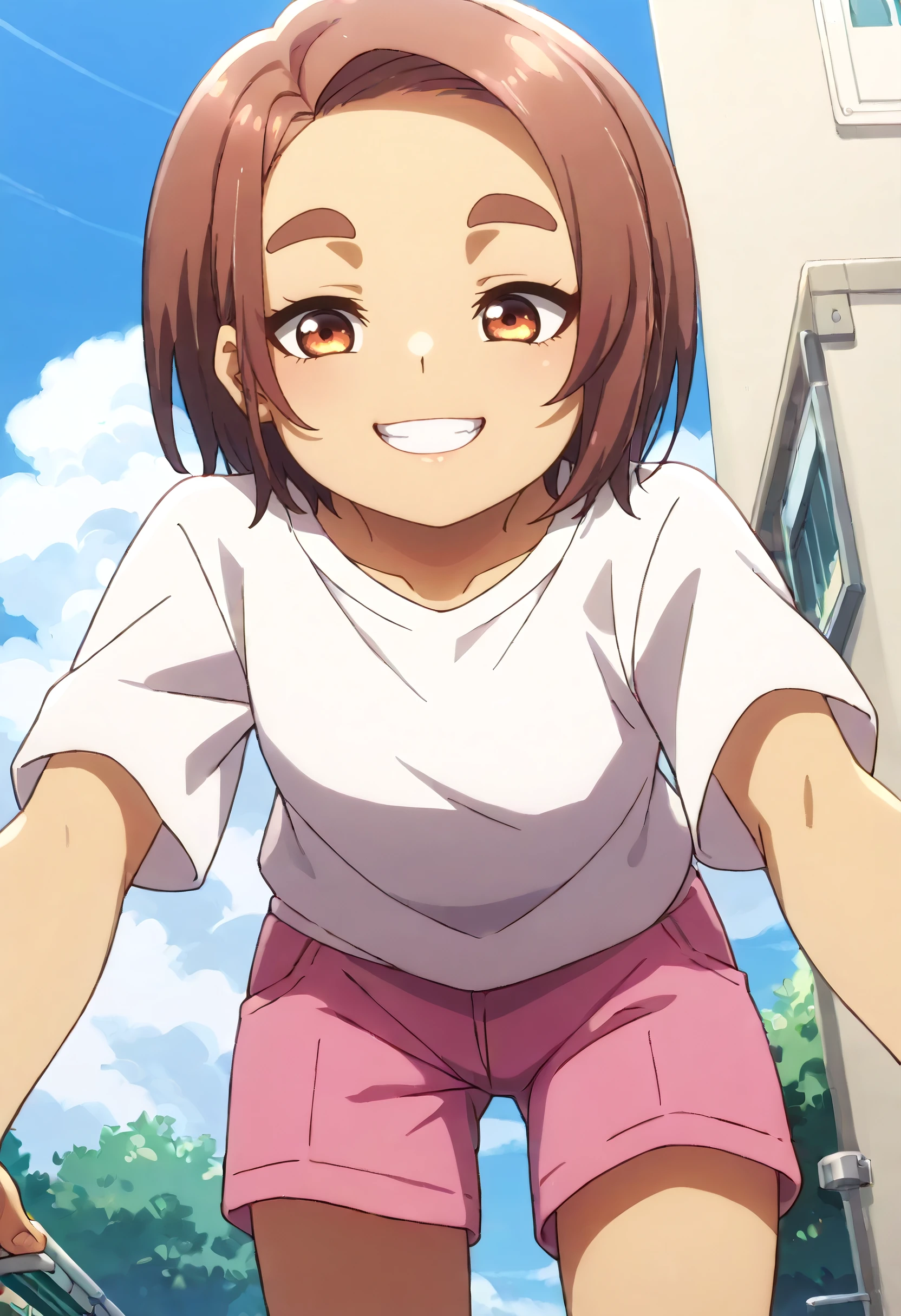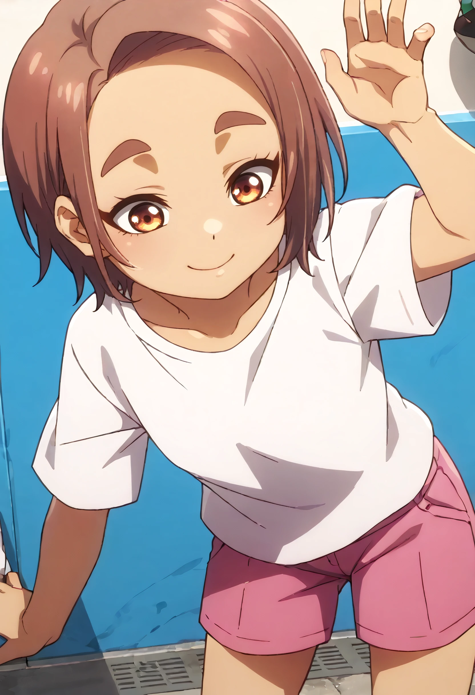 YaeShorts, shirt, t-shirt, white shirt, short sleeves, pink shorts, shorts, short shorts,