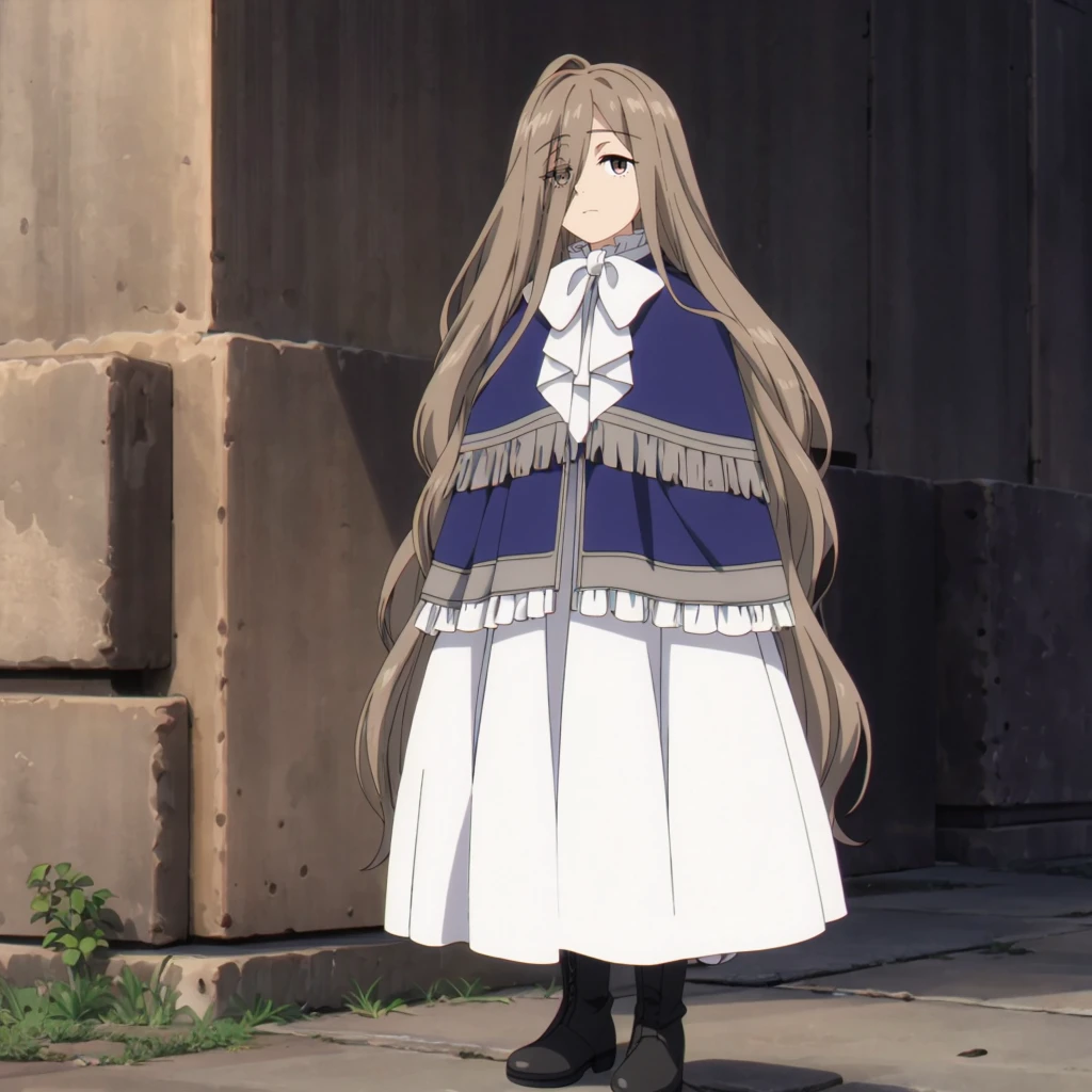 Sense,1girl,light brown hair,very long hair,wavy hair,hair over one eye,hair between eyes,brown eyes,