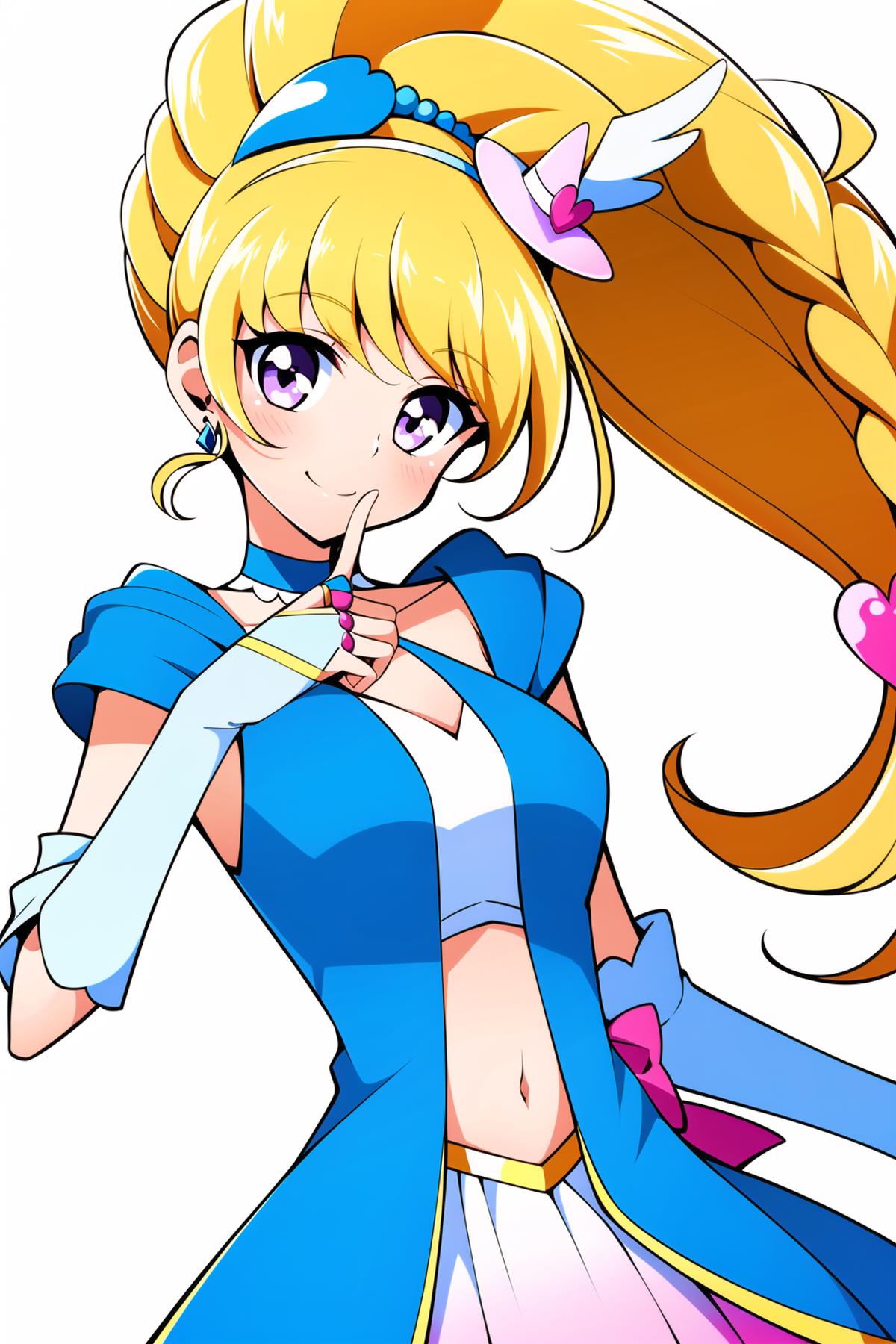 long hair, looking at viewer, smile, open mouth, multiple girls, skirt, blonde hair, gloves, hat, dress, bow, 2girls, purple eyes, purple hair, :d, hair bow, cowboy shot, boots, frills, black gloves, elbow gloves, white gloves, red bow, kneehighs, black headwear, witch hat, holding hands, magical girl, white footwear, knee boots, high ponytail, pink bow, brooch, half updo, pink skirt, purple skirt, mini hat, pink headwear, multicolored background, symmetry, asahina mirai, izayoi liko