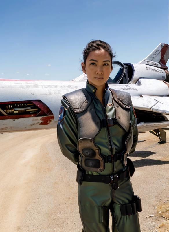 Trigger words for the newest version are battlestarofficer ,vipersuit ,bsgdckcrw and bsgpltoffdty. The Lora can also generate Vipers, the trigger phrase is colonialvpr fighter jet. Have in mind that those vipers are intended to use as parked in the hangar.