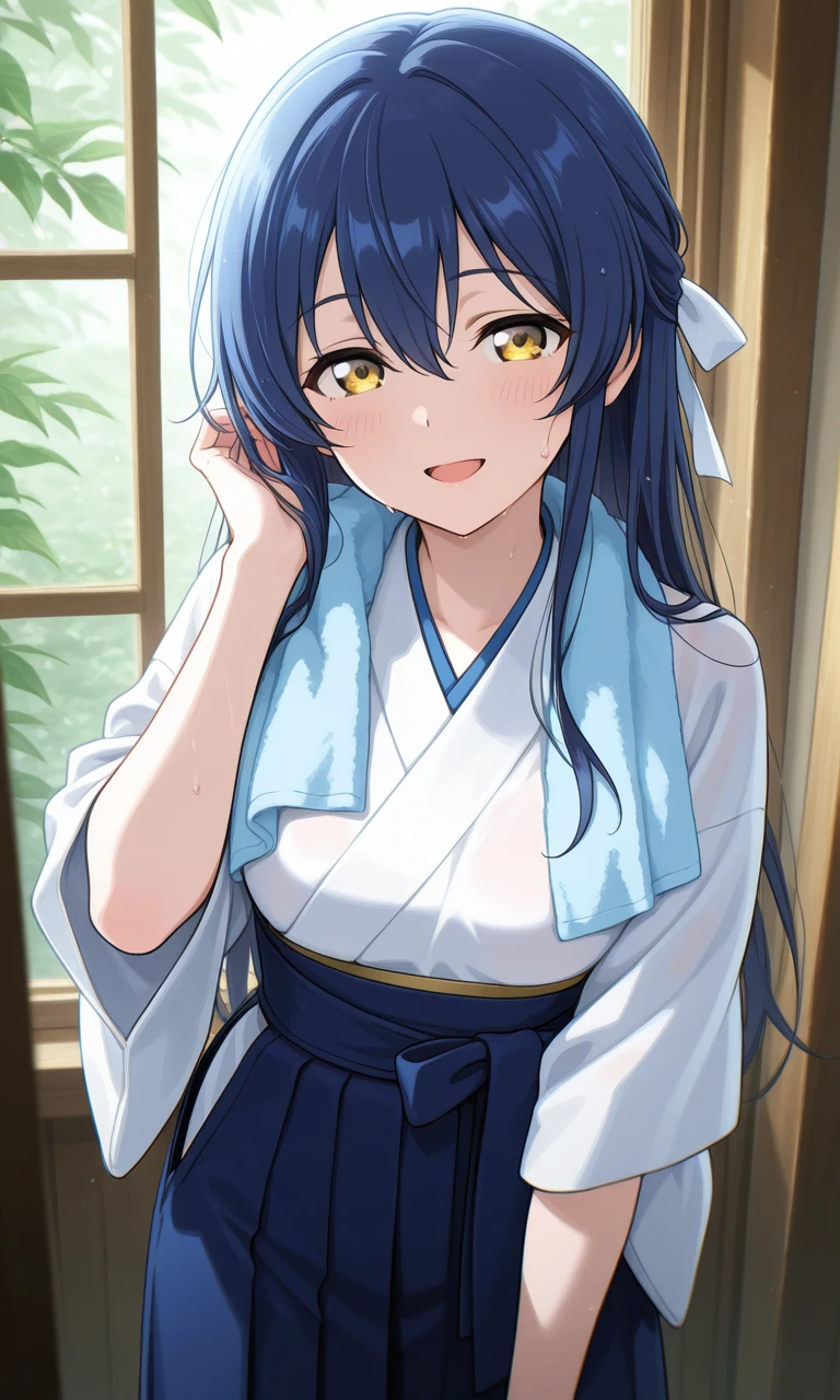 umidah, long hair, blue hair, yellow eyes