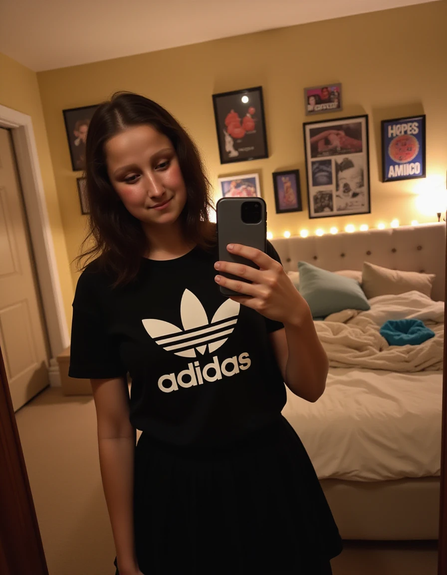 <lora:real_mona_lisa_flux_lora_triggerword_moonal1saa:1.5> moonal1saa fashion model posing, wearing a black t-shirt on a fashion runway