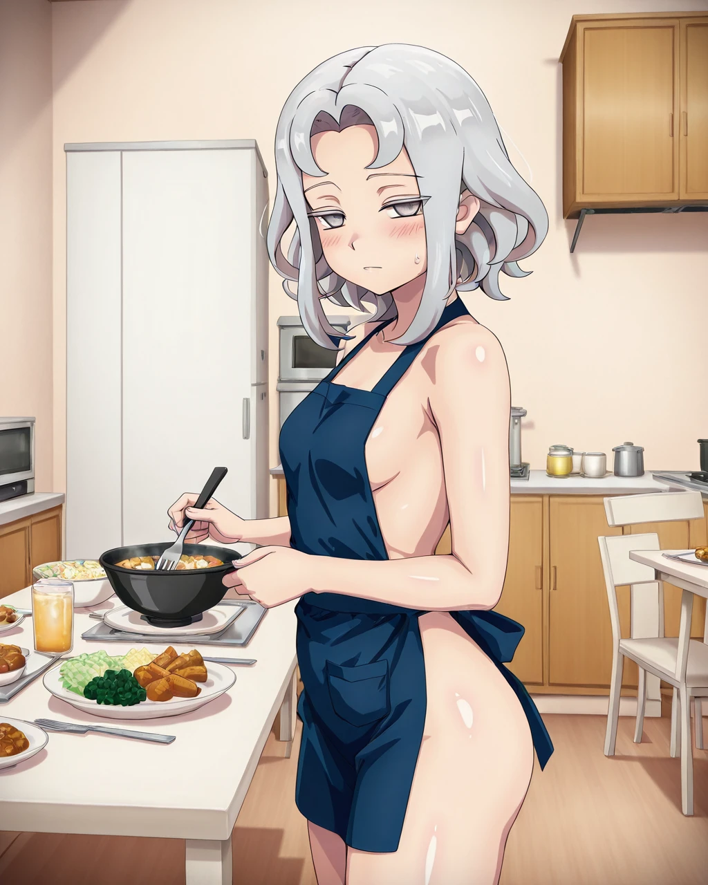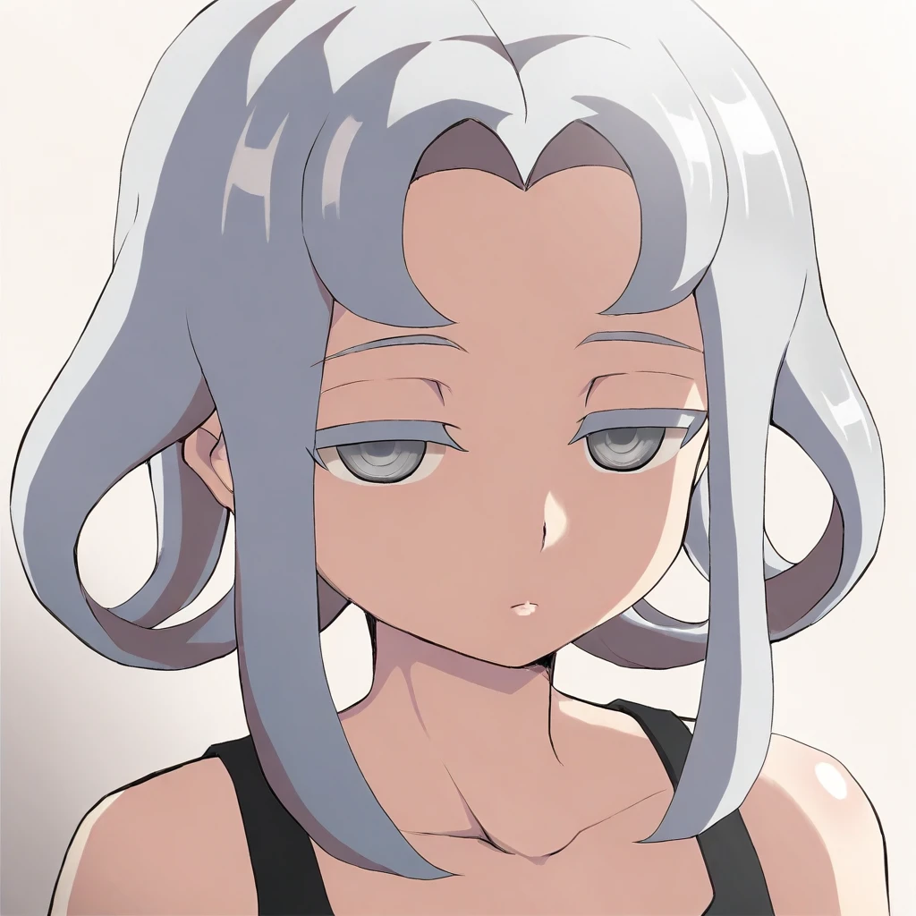 1girl, Akasode Matsuri, gray hair, shoulder-length hair, wavy hair, gray eyes, half-closed eyes,