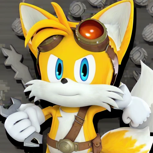 For better result use words such as solo, looking at viewer, blue eyes, gloves, 1boy, holding, animal ears, tail, male focus, shoes, white gloves, fox ears, fox tail, goggles, multiple tails, sneakers, furry, goggles on head, furry male, two tails, animal nose, wrench, fox boy and so on