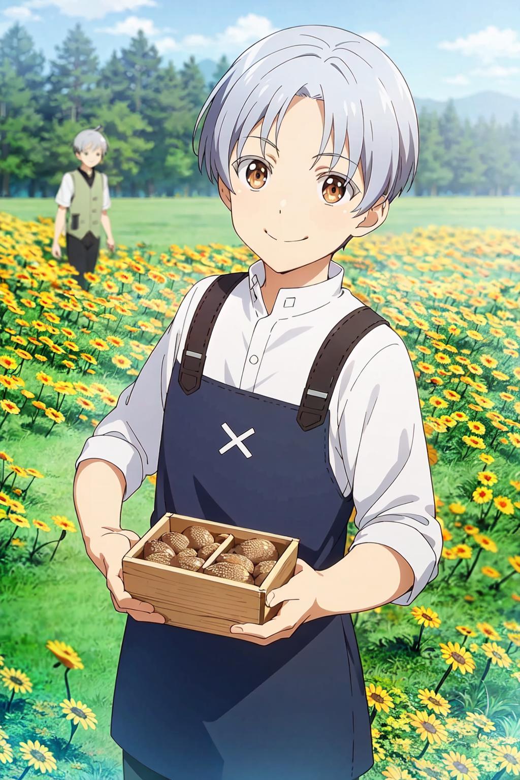 Triggers: mil,1boy, short hair, grey hair, brown eyes,