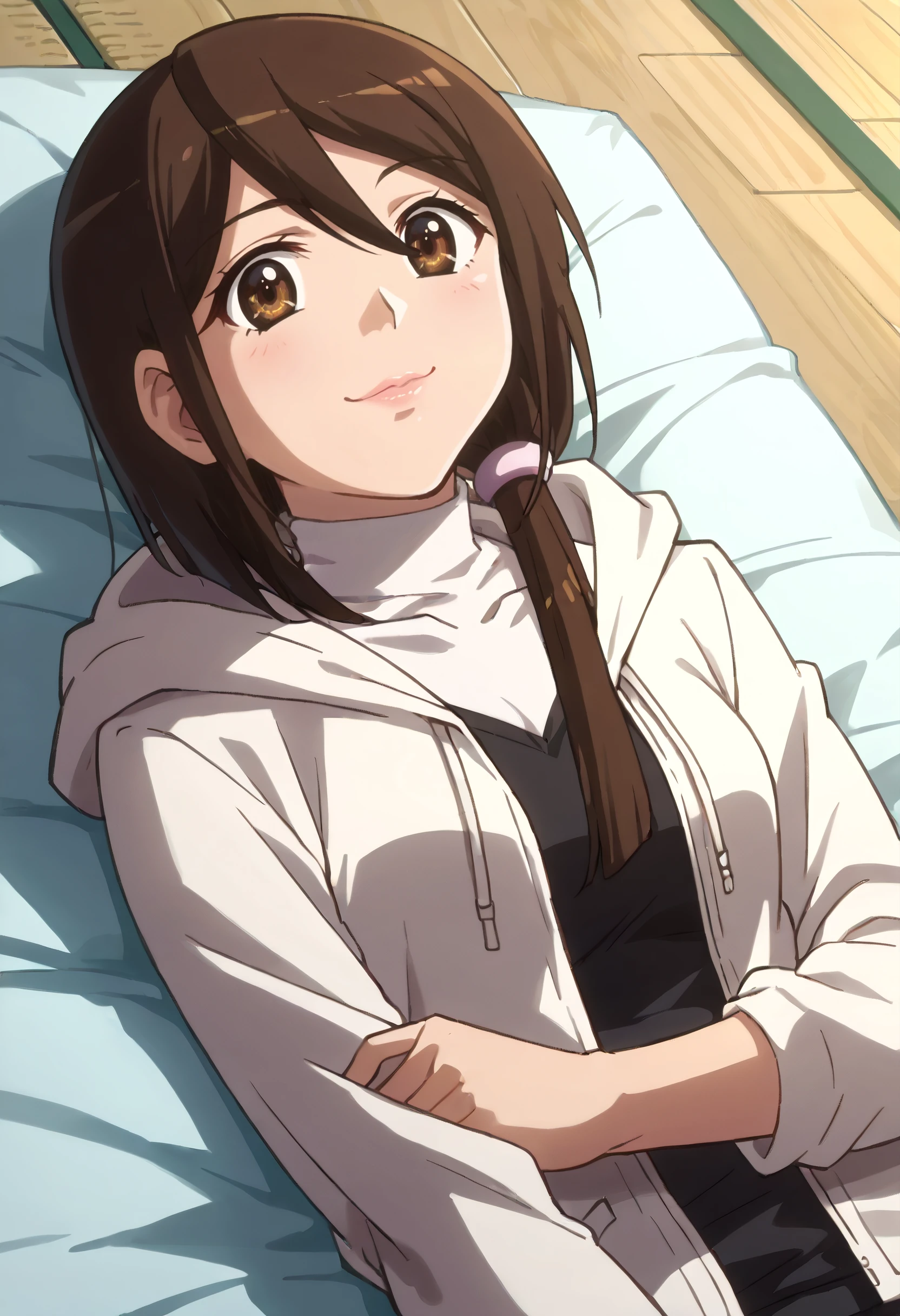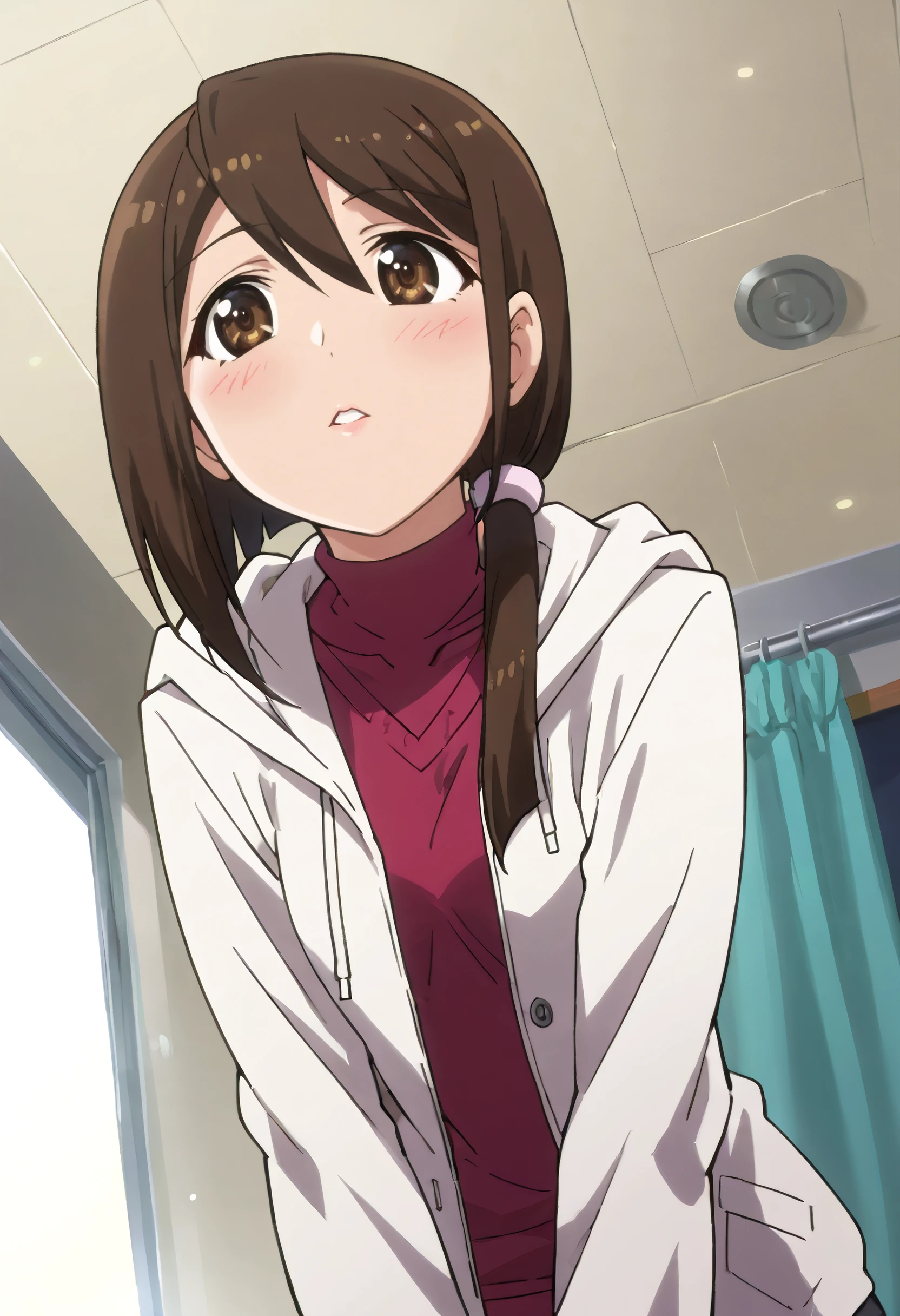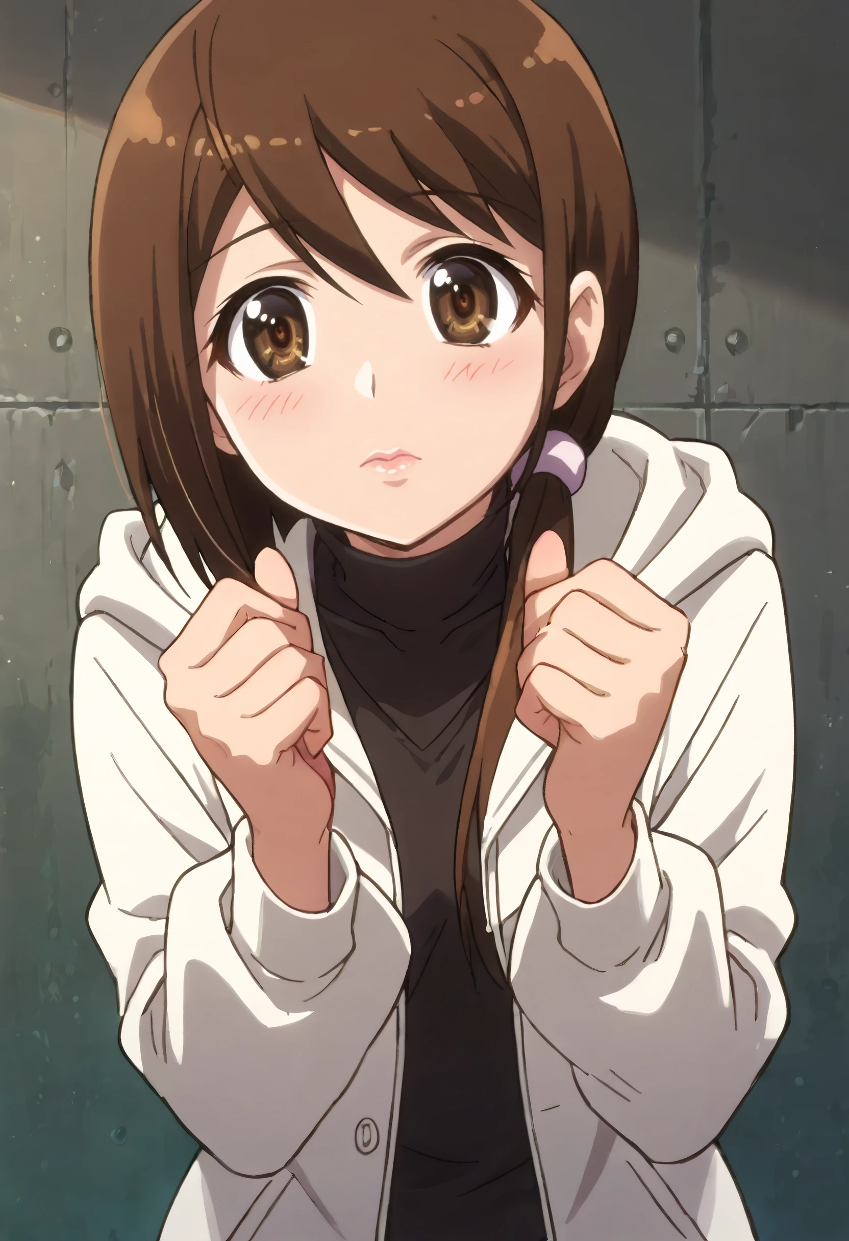 JunHoodie, hood, jacket, turtleneck, hoodie, casual, scrunchie, open clothes, coat, white jacket, shirt, hair scrunchie, hooded jacket,