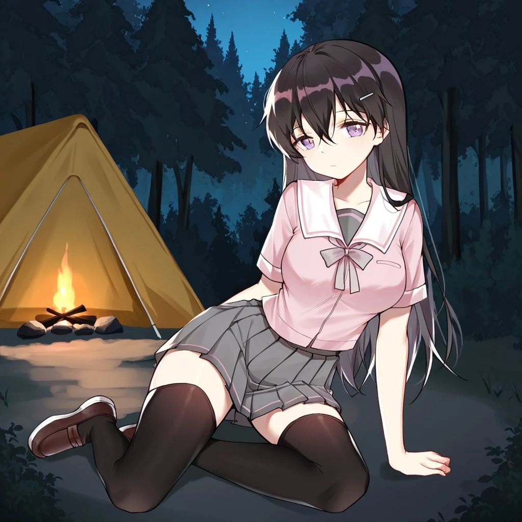 Extra: pleated skirt, hairclip, loose socks, serafuku, shoes