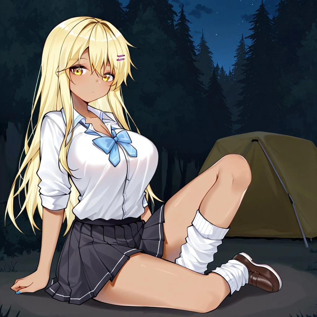 Megumi: HB2, Megumi, blonde hair, yellow eyes, long hair, gyaru, large breasts, dark-skinned female