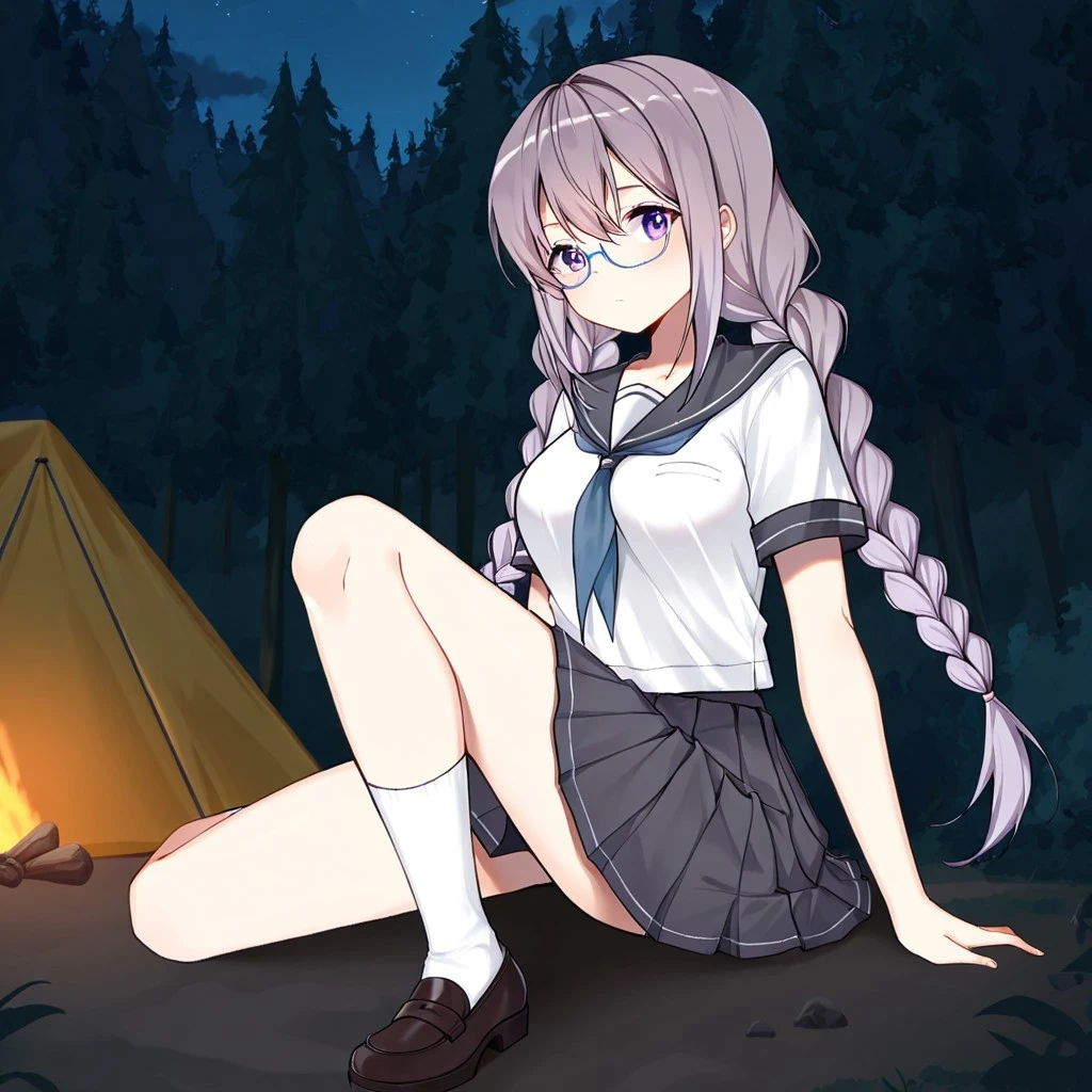 Extra: glasses, pleated skirt, socks, serafuku, shoes