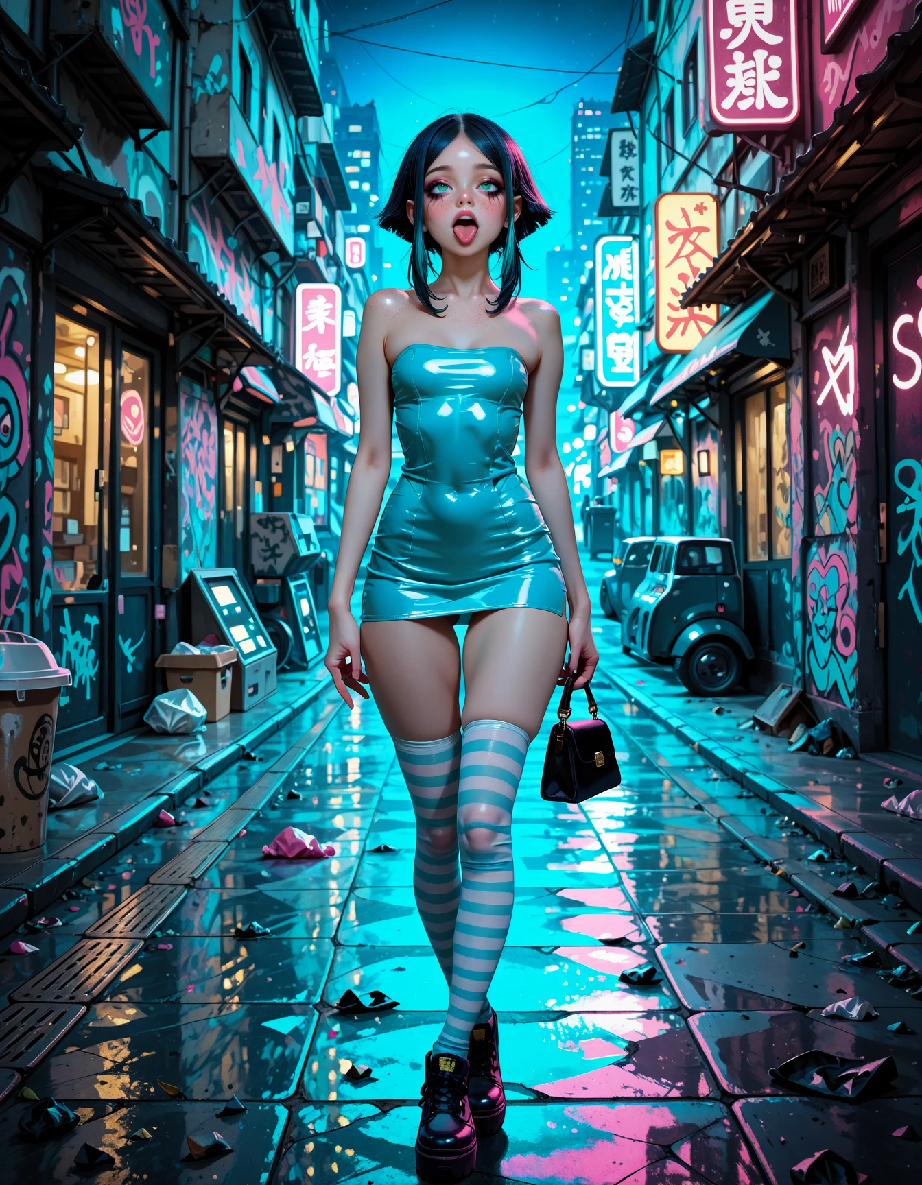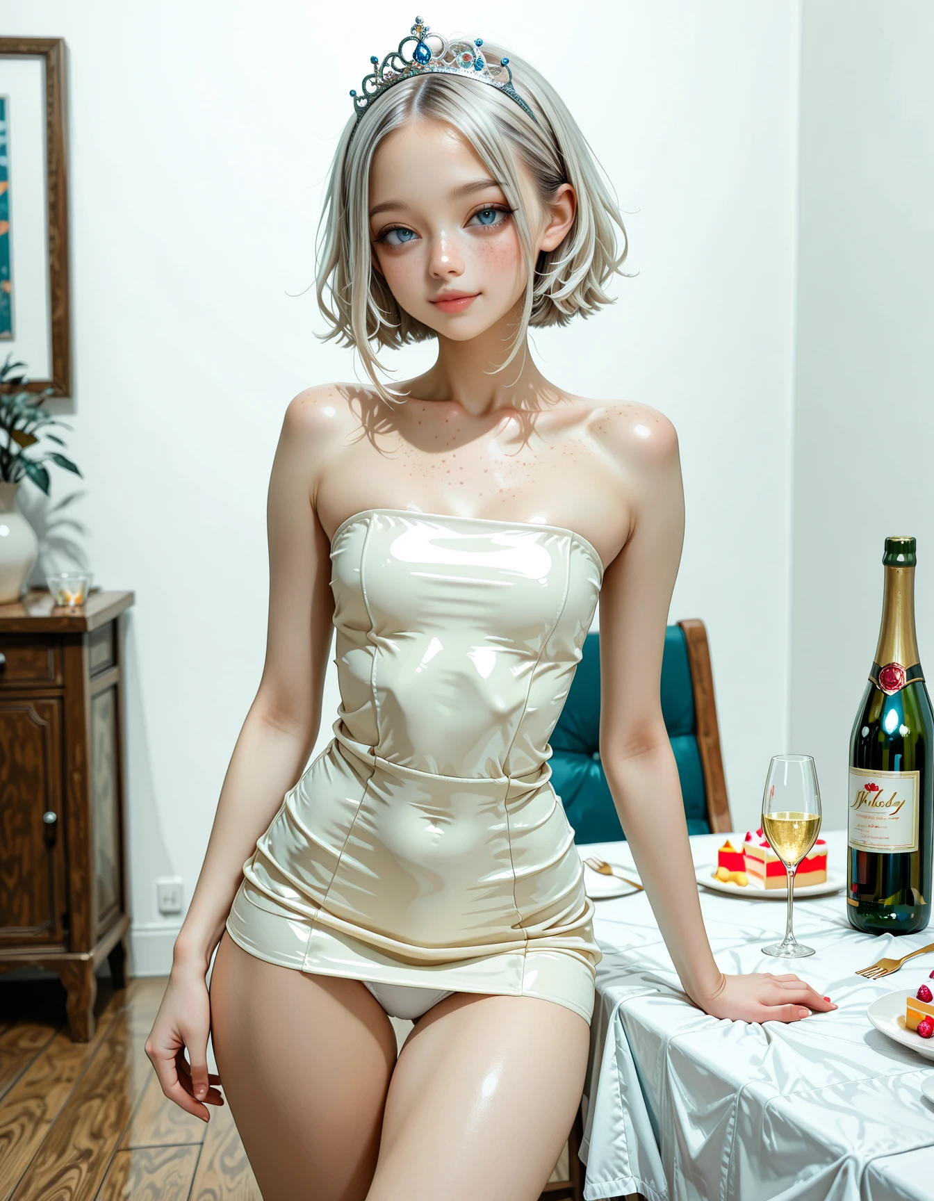 Extra tags : mini dress, micro dress, long sleeves, wrist cuff, collar, strapless.