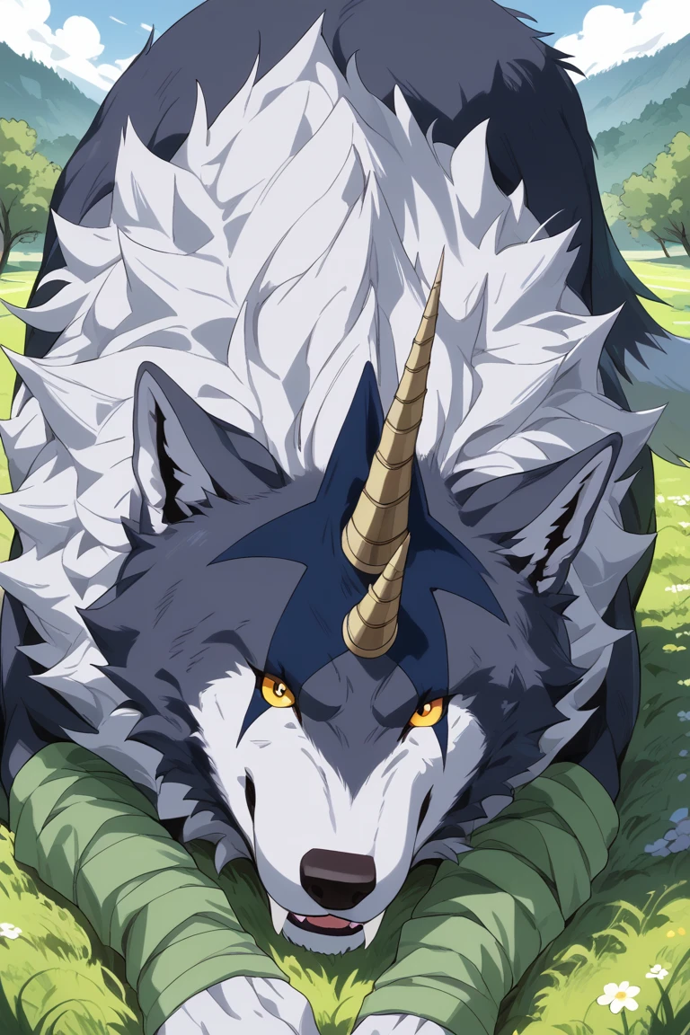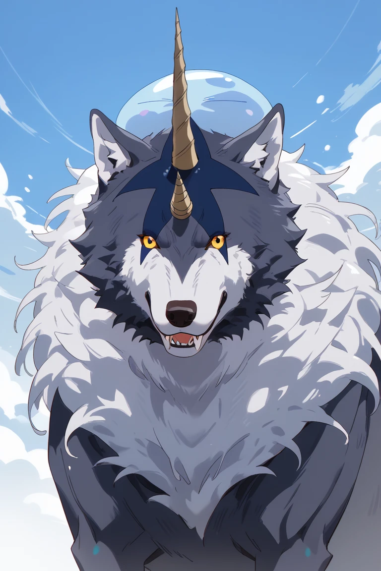 Ranga = white-blue_wolf focus, RangaTGRS, 1wolf, anime screencap