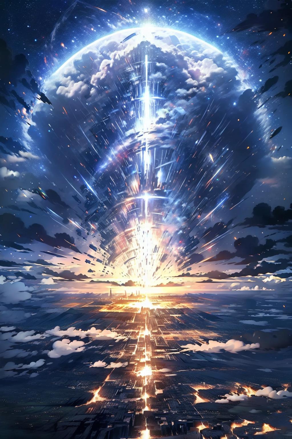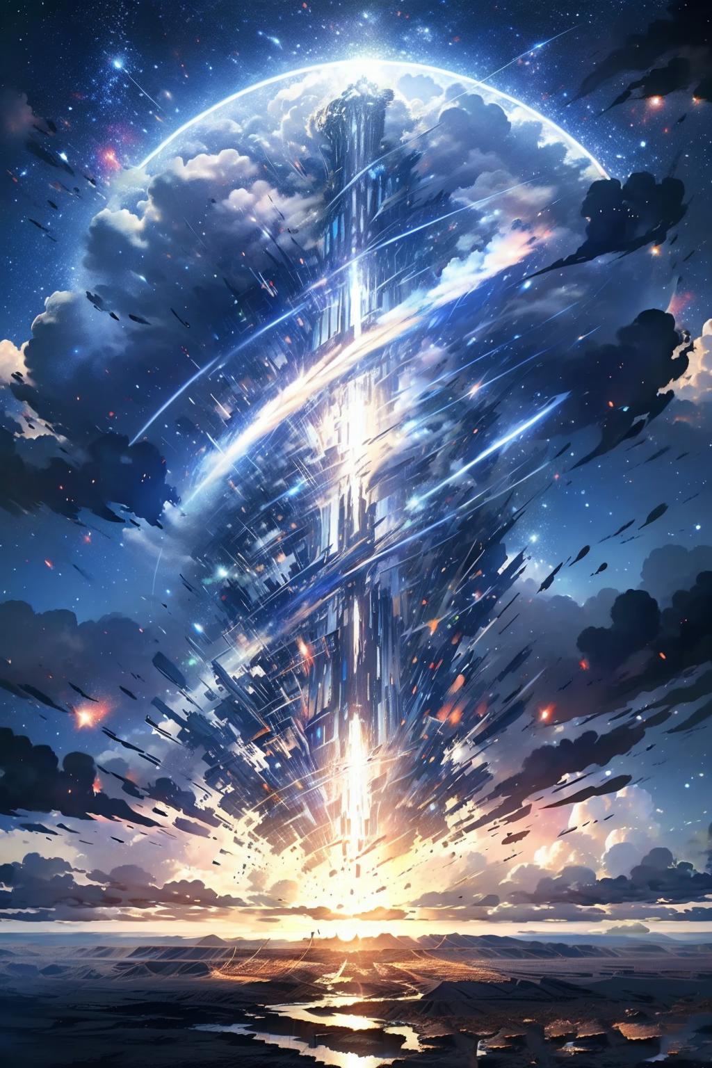 Tips: Lora should be set at 0.8-0.9 weight, should add the keywords (cloud, sky) to create more beautiful effects.