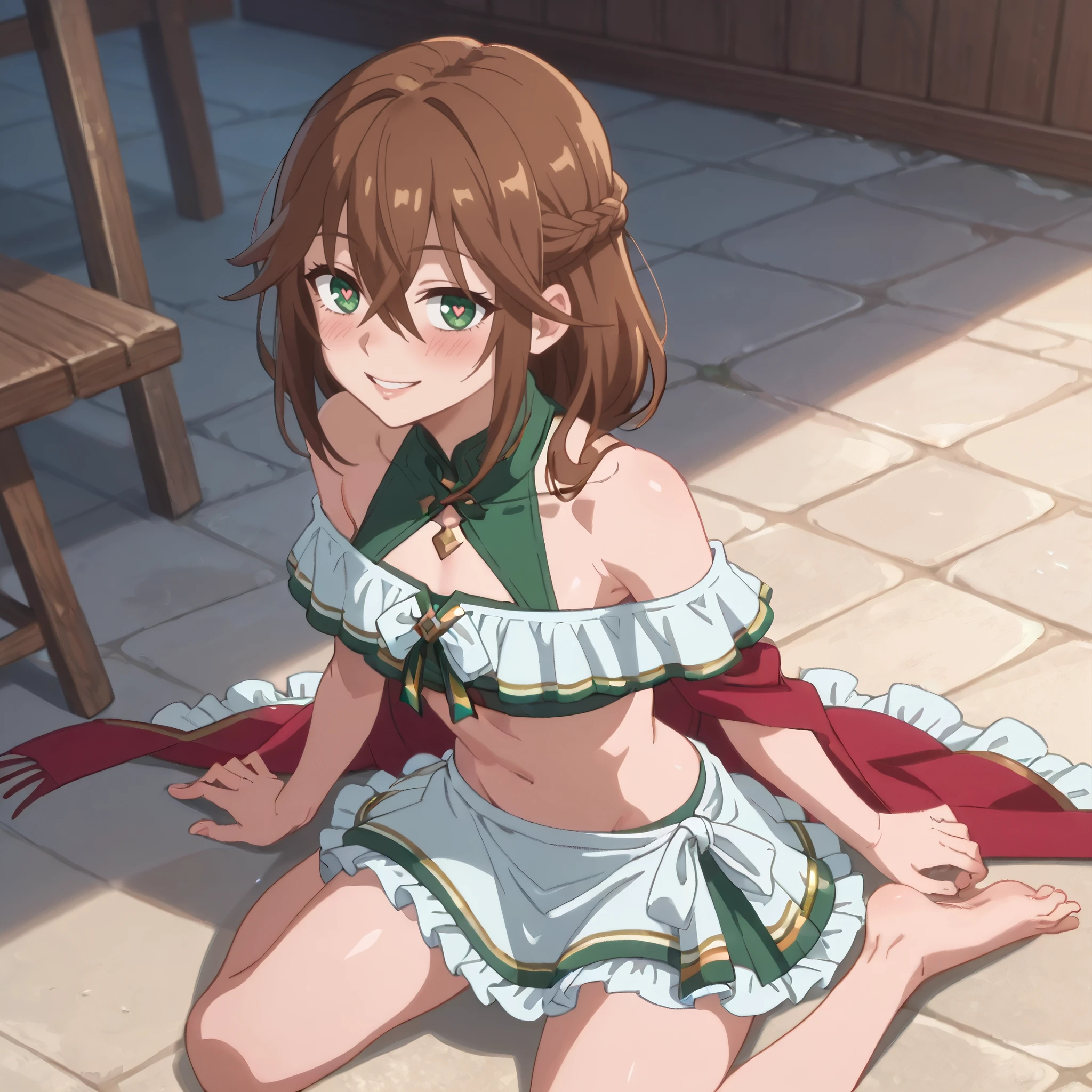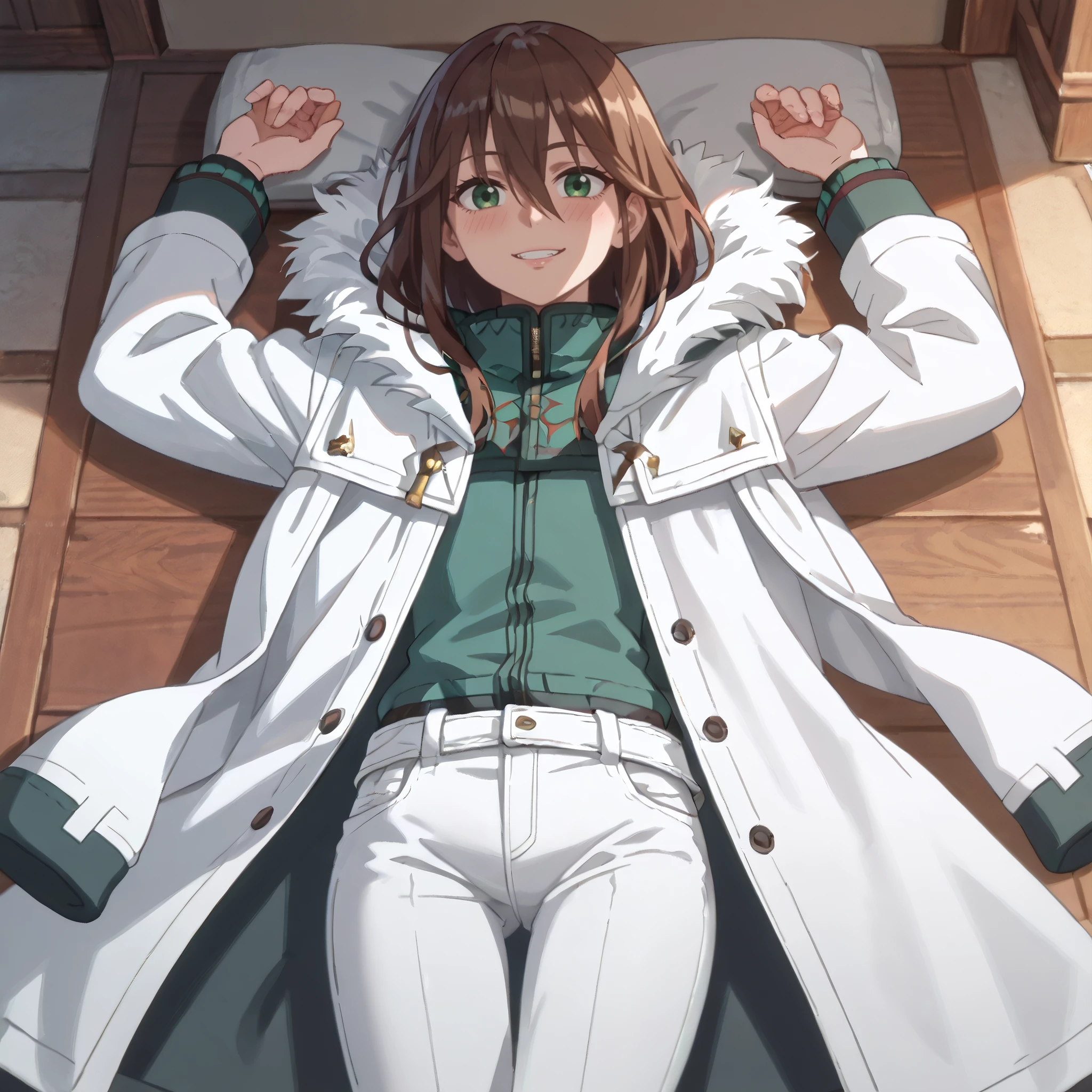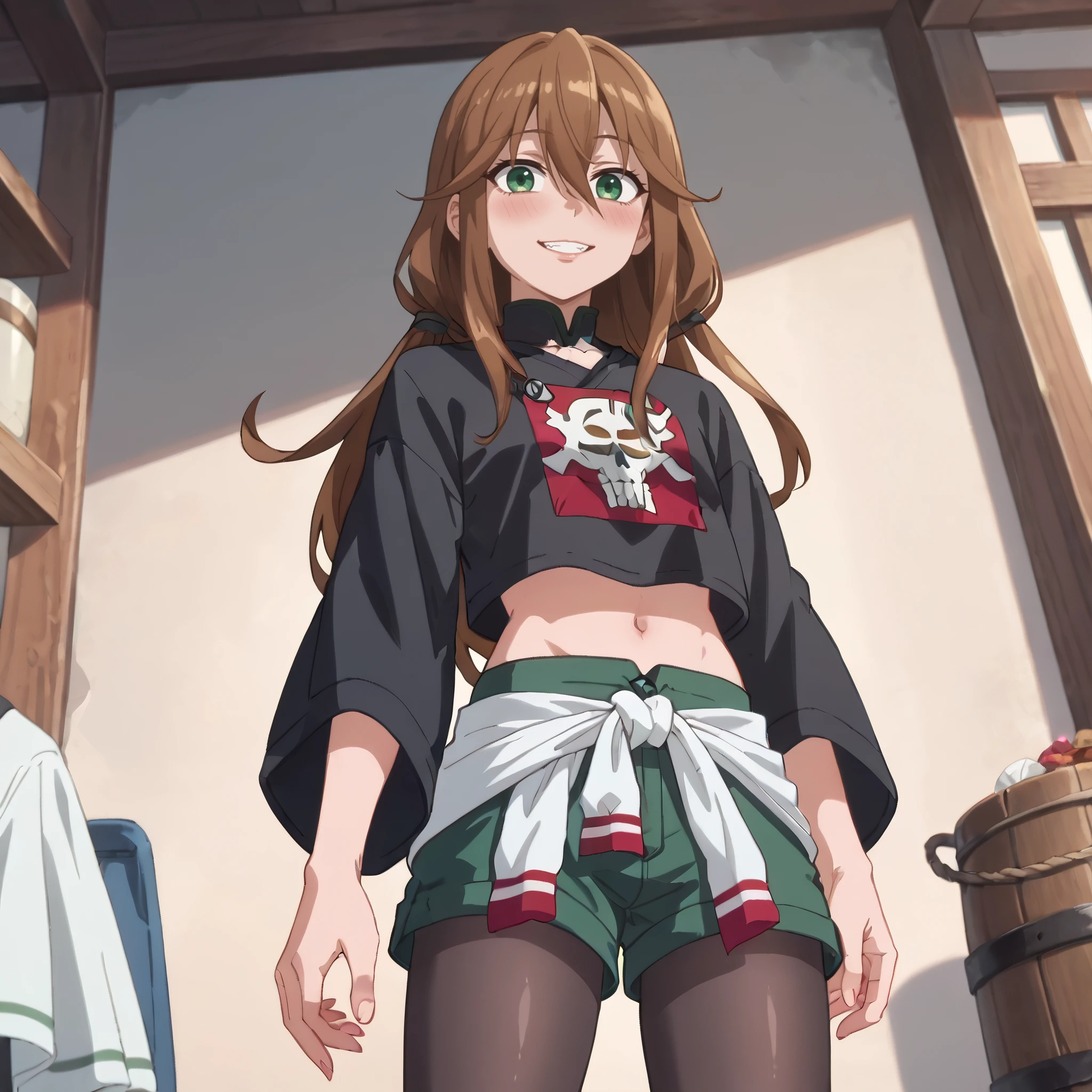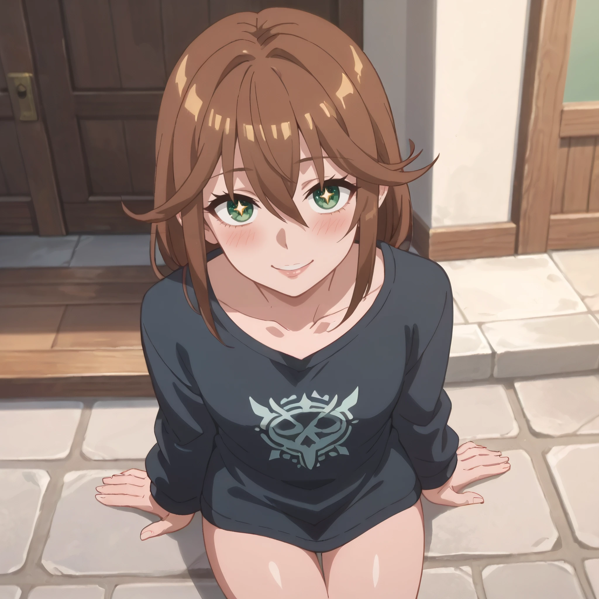 A4OBard, hair between eyes, long hair, bangs, brown hair, green eyes,