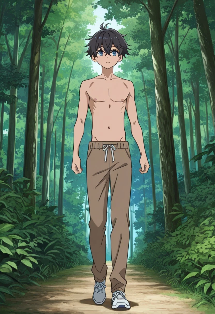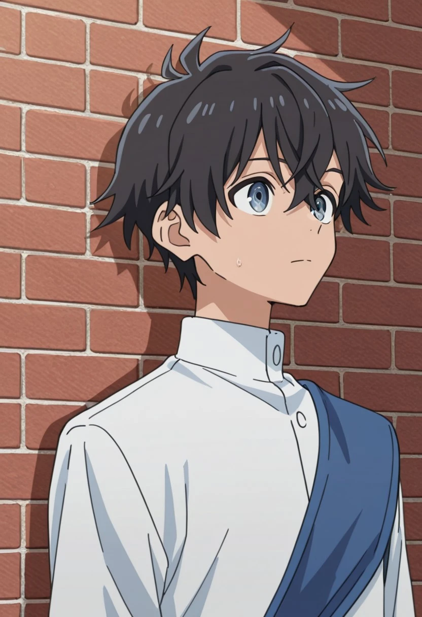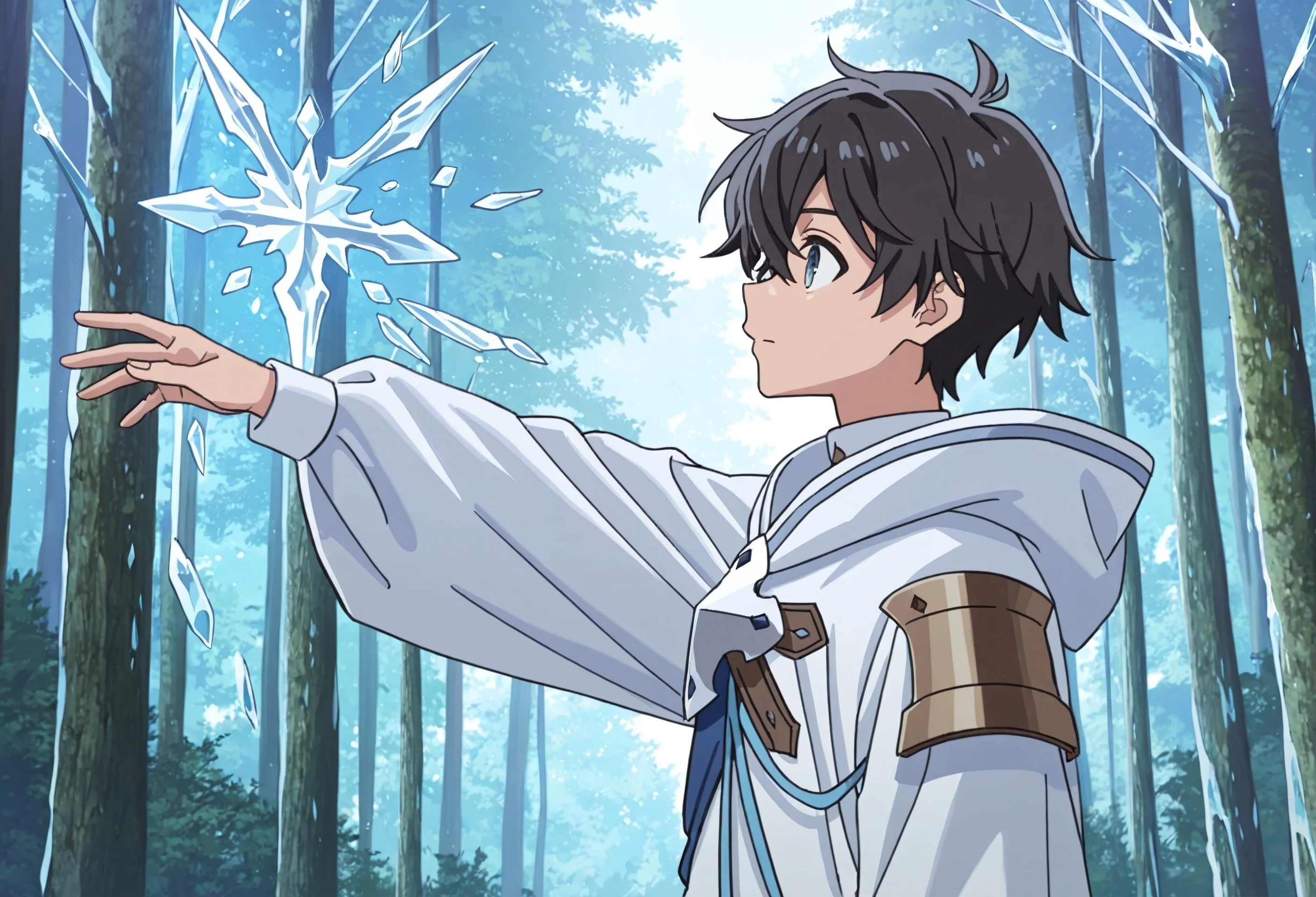 Ryo_WM, blue eyes, black hair, white robe, silver cross, blue sash