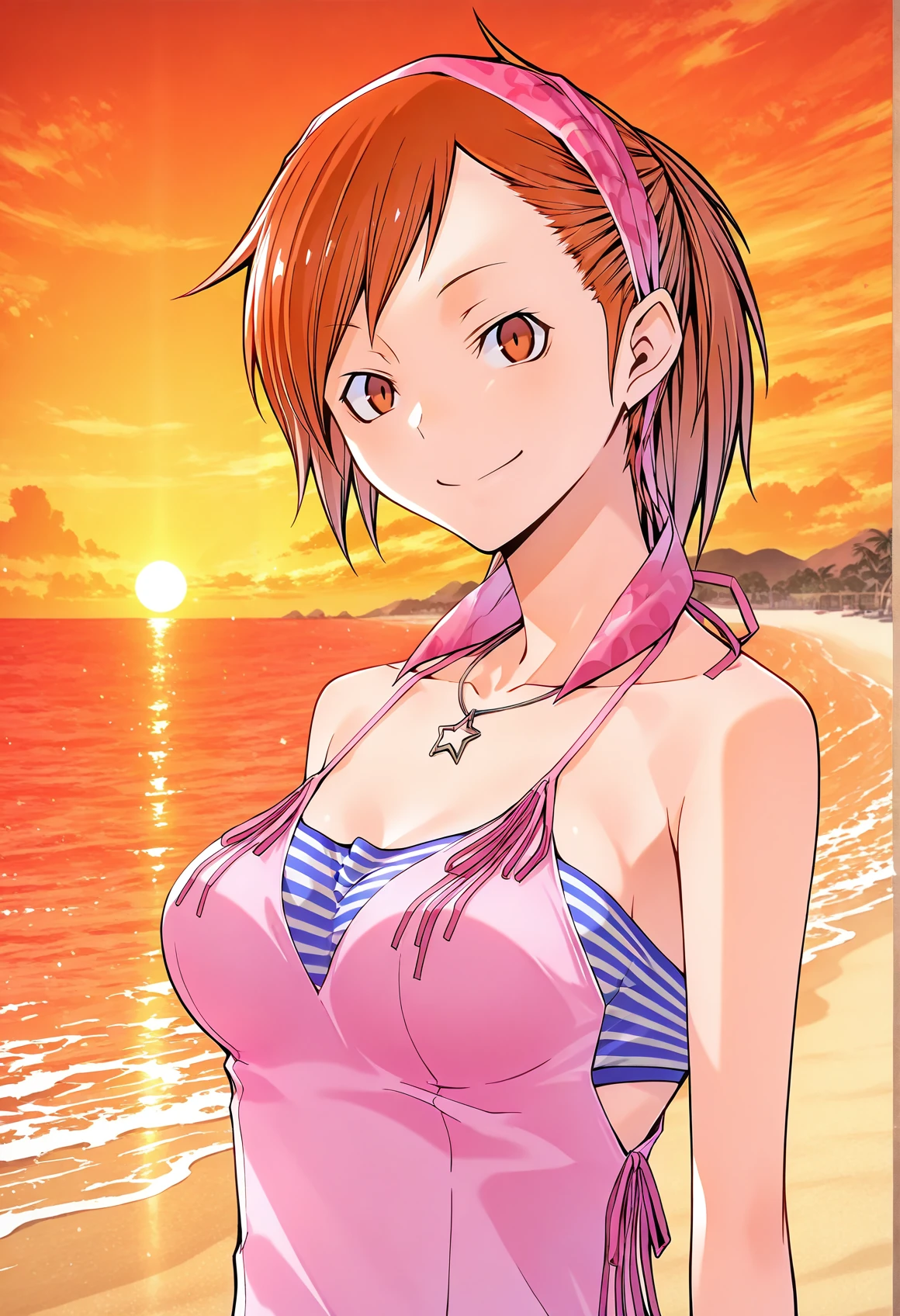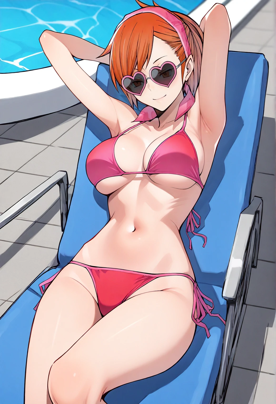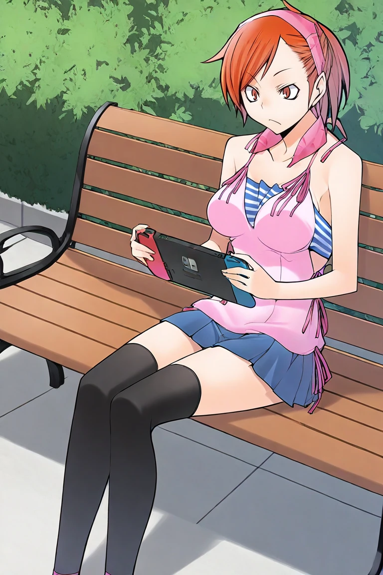 large breasts, striped panties, cleavage, ribbon, open mouth, blush, armpits, navel, sweat, pocky, ???????, food, smile, arms behind back, tears, clothes pull, nintendo dsRandom information: If you plan to prompt for the star necklace, sometimes it will create star pendants where the bandana should be because of training images where the necklace is floating, can usually be fixed by prompting for the bandana. The bandana does not need to be prompted for usually and I have no idea if it can be removed because its in every picture of the dataset. When prompting for the striped bandeau without the pink camisole may need to prompt for strapless