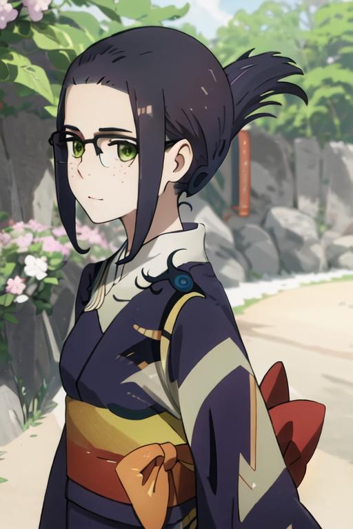 The trigger word is ikuno_darlinginthefranxx, and the recommended tags are best quality, masterpiece, highres, solo, {ikuno_darlinginthefranxx:1.15}, green_eyes, glasses, black_hair, freckles, folded_ponytail.