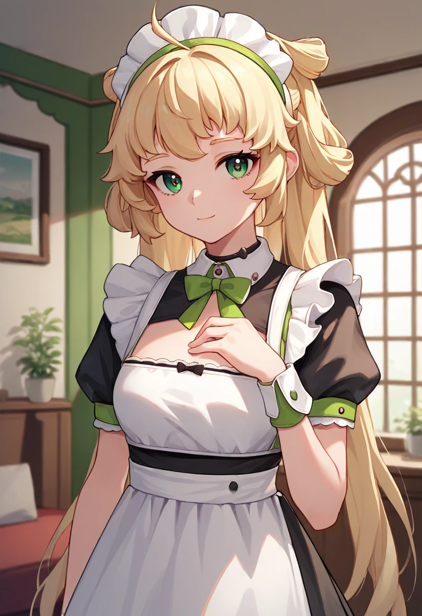 long hair, blonde hair, green eyes