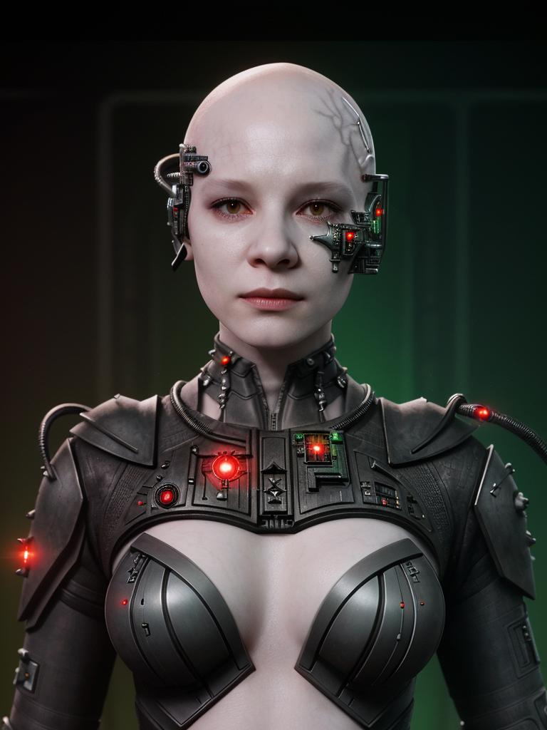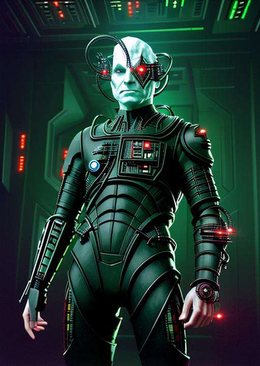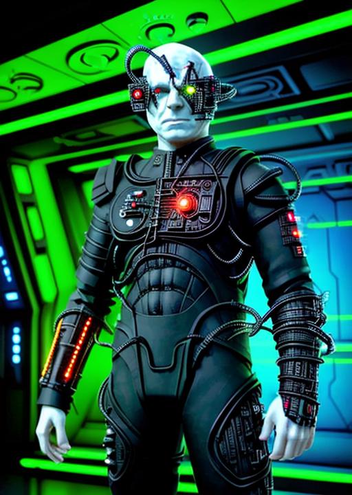 Time to borgify your friends! Add borg in front of your subject to make them more borg-ish. Example: a borg woman . Add the trekborg tag to really emphasize the borgyness if they're not looking borg-a-rific enough. The model heavily prefers humans, so you might have to reduce the weight to 0.7 or lower to borgify your pets, klingons, or maga neighbors.