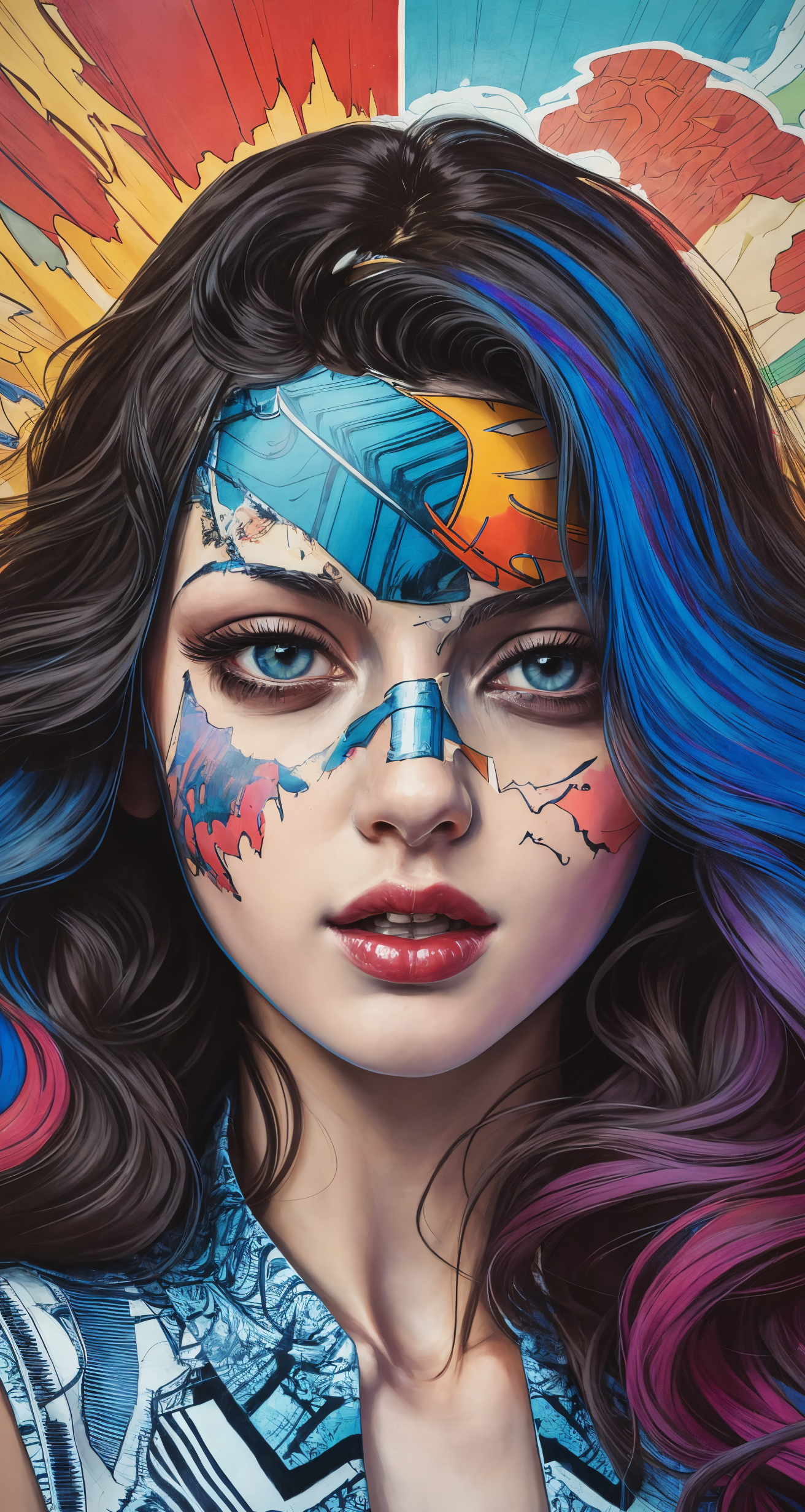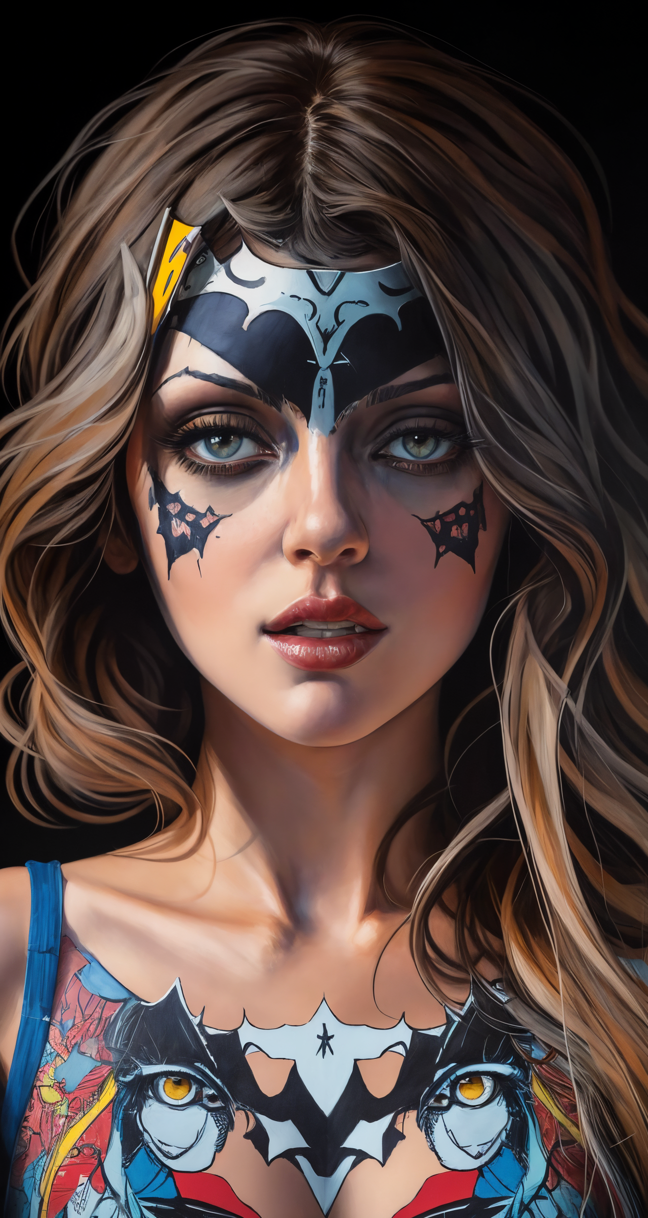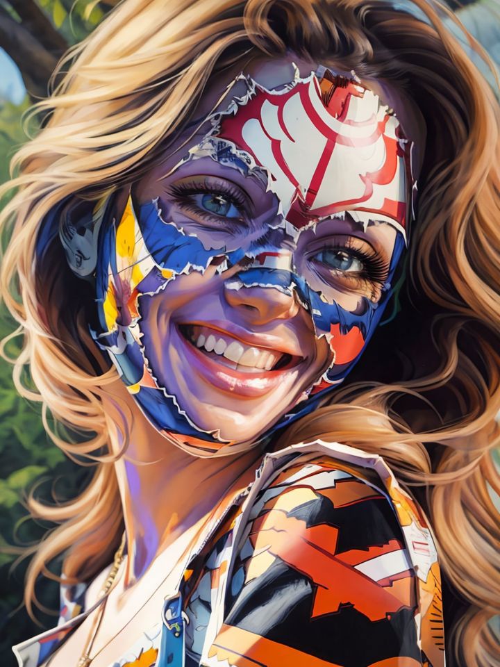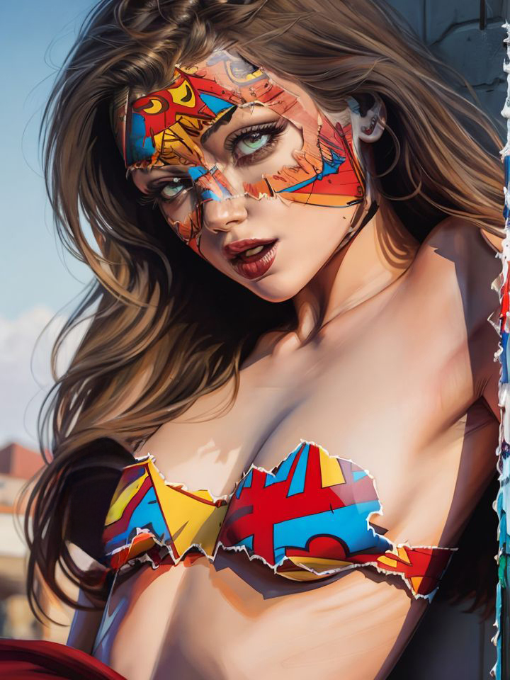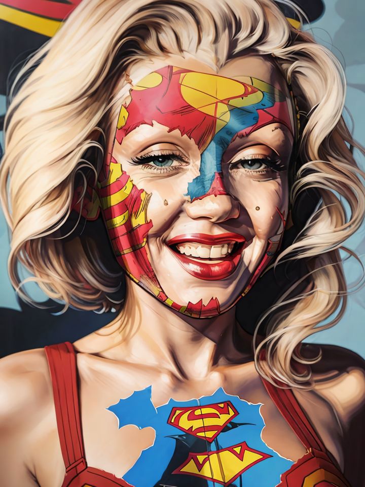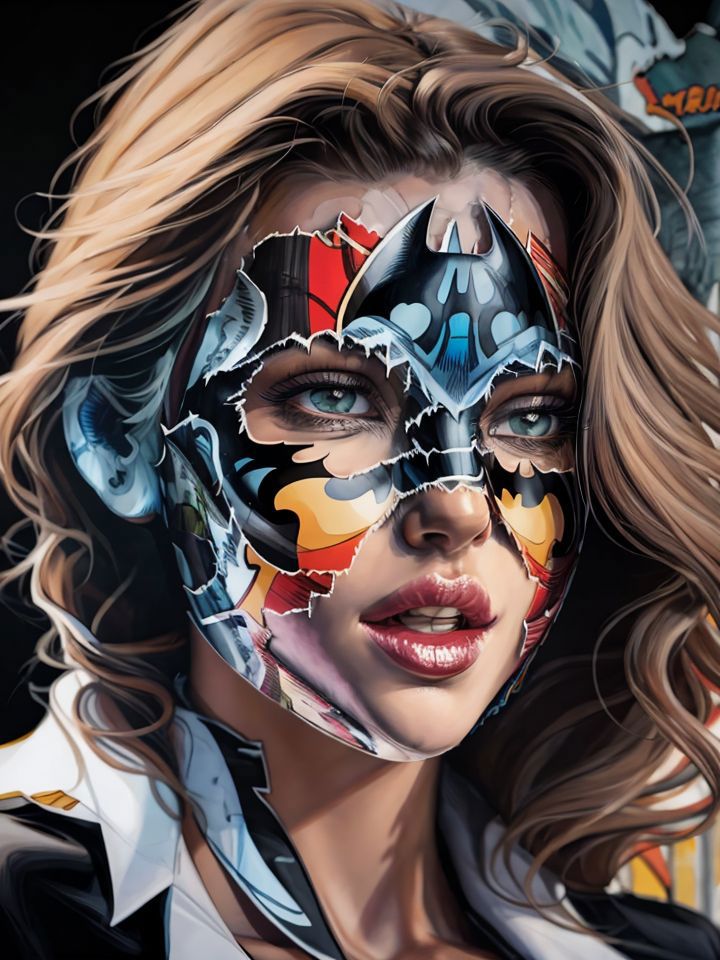 A favorite artist Sandra Chevrier creates paintings incorporating comic books on women's faces. This is a pretty specific LoRA, but a cool one. Put the comic you want in the prompt after the lora. I haven't tested multiple comics, but Batman, Superman and Archie worked well. I used the Babes model for this LoRA and it works great. If you lower the weight of the LoRA <lora:SChevrier-04:0.7> you can get her kind of style of woman without the comic book face. Enjoy!
