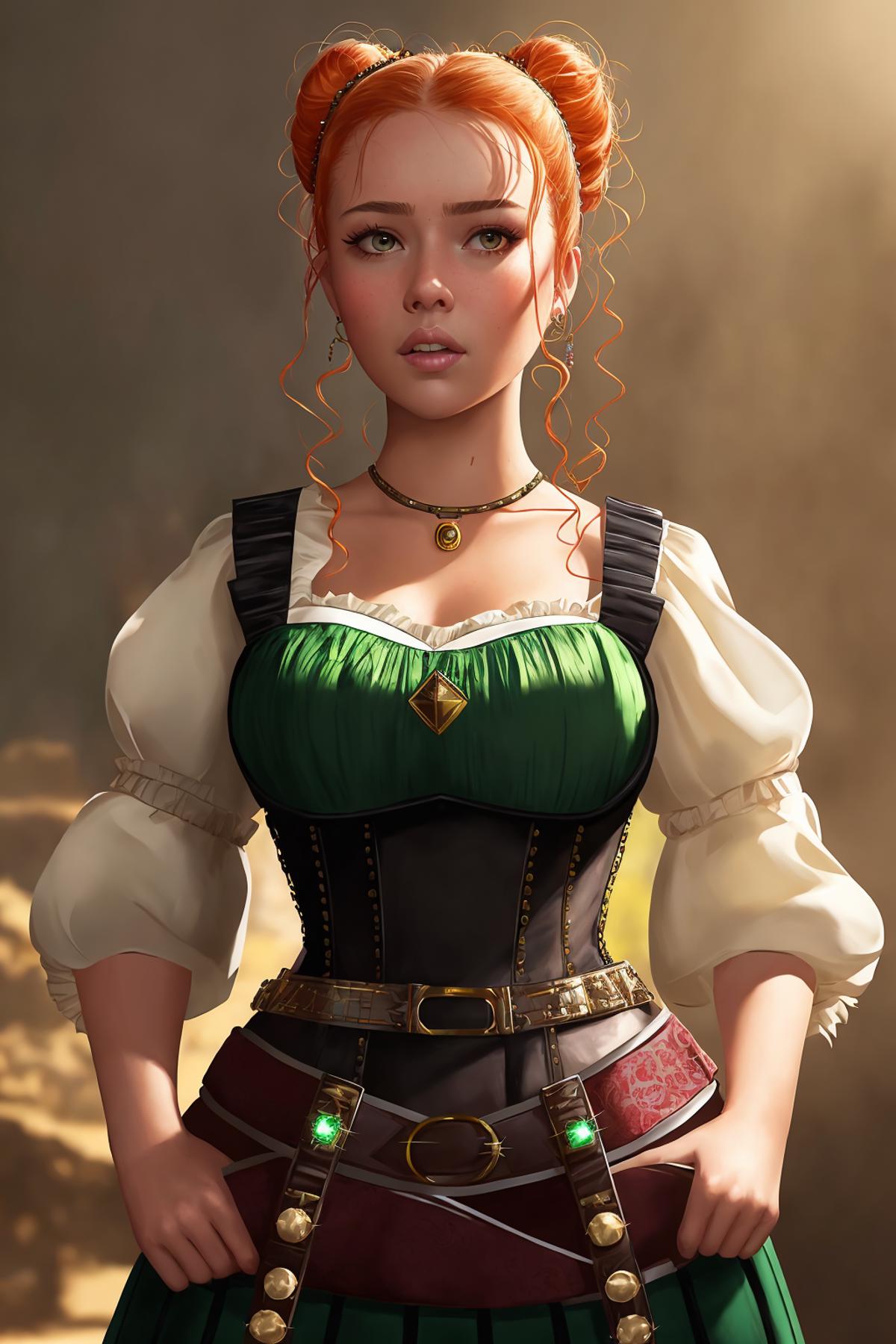 If you need a consistent character but don't want a known celebrity, Dollie is your gal. Dollie prefers to have strawberry blonde hair unless you change your prompts.