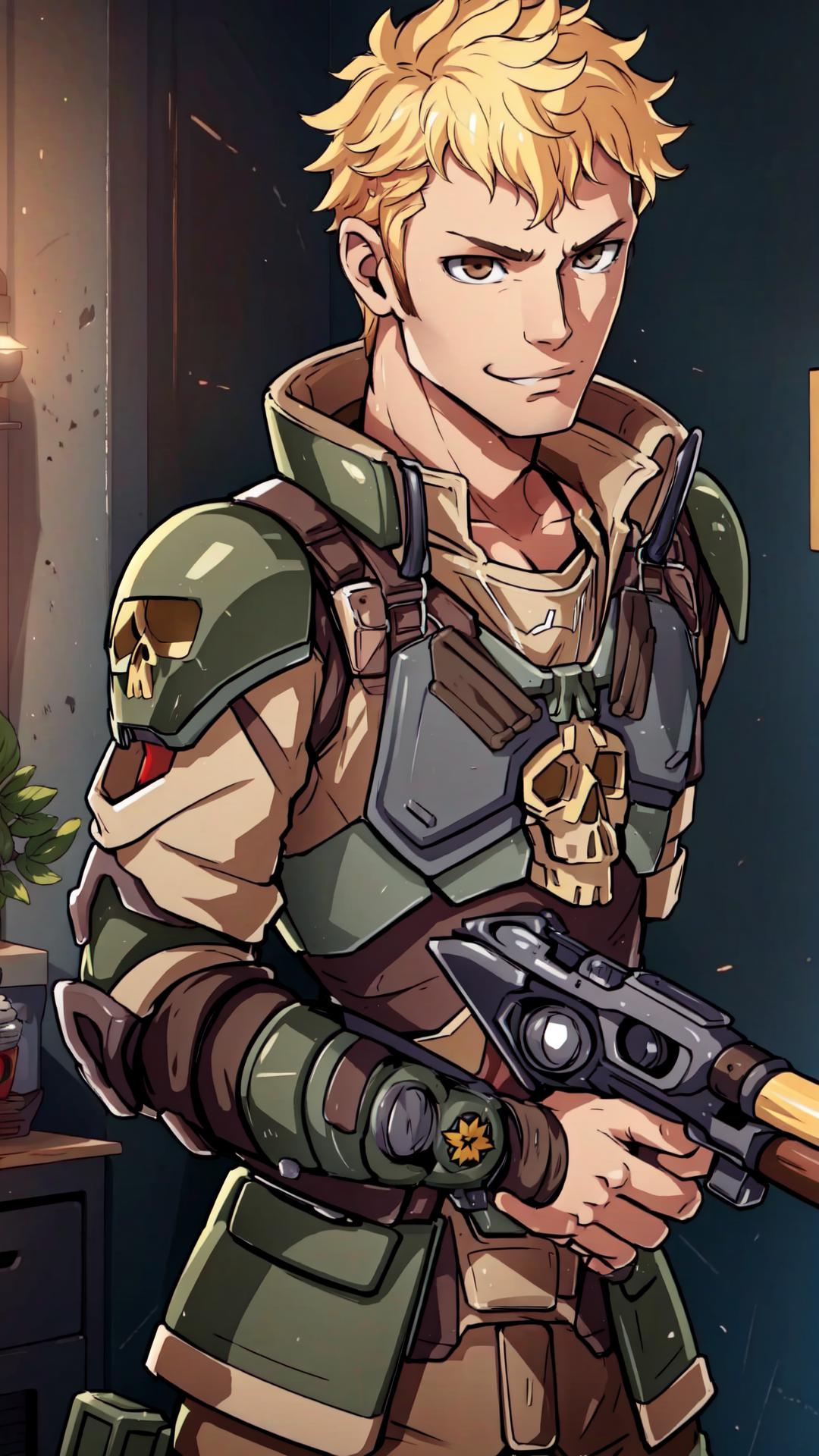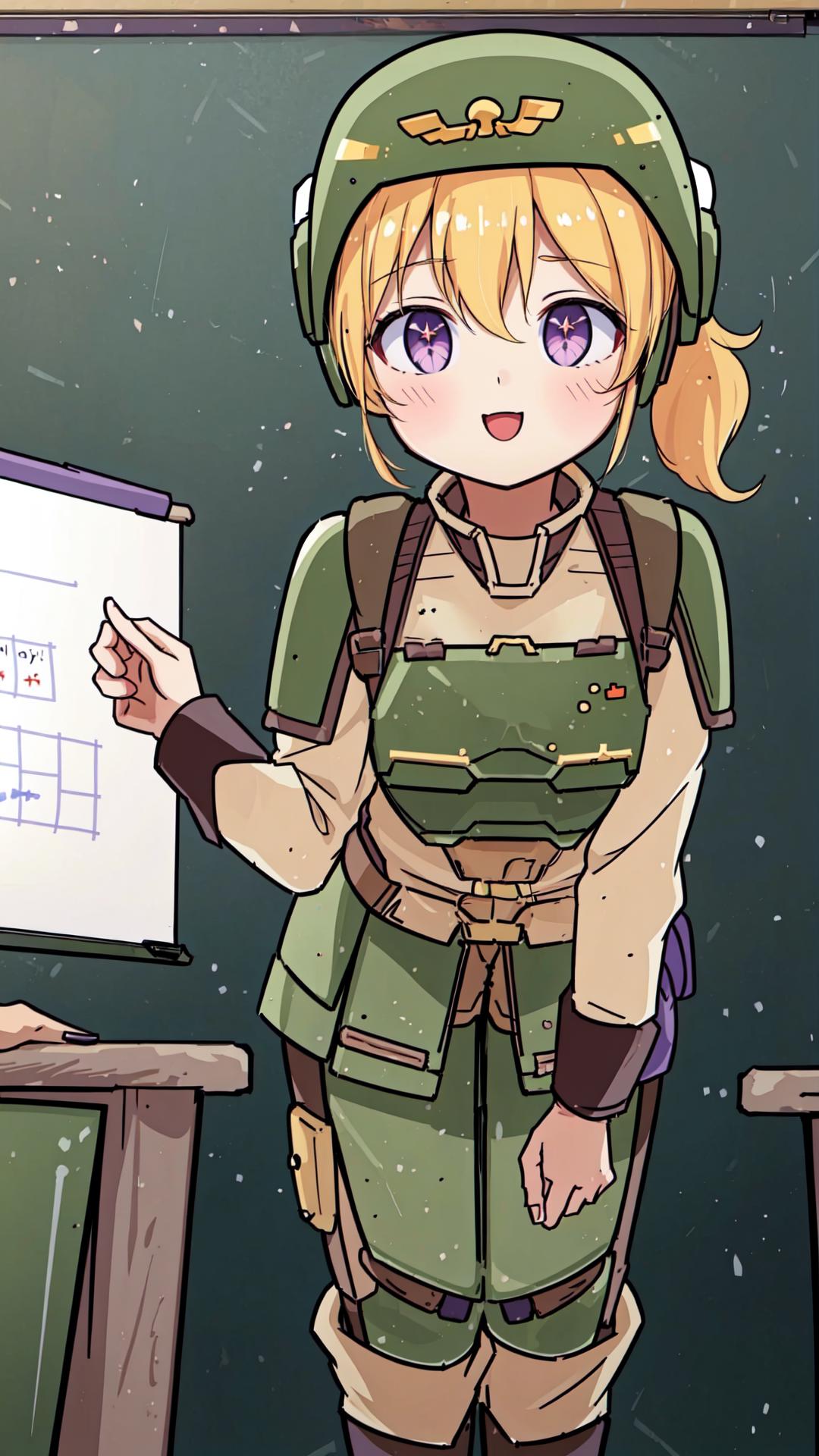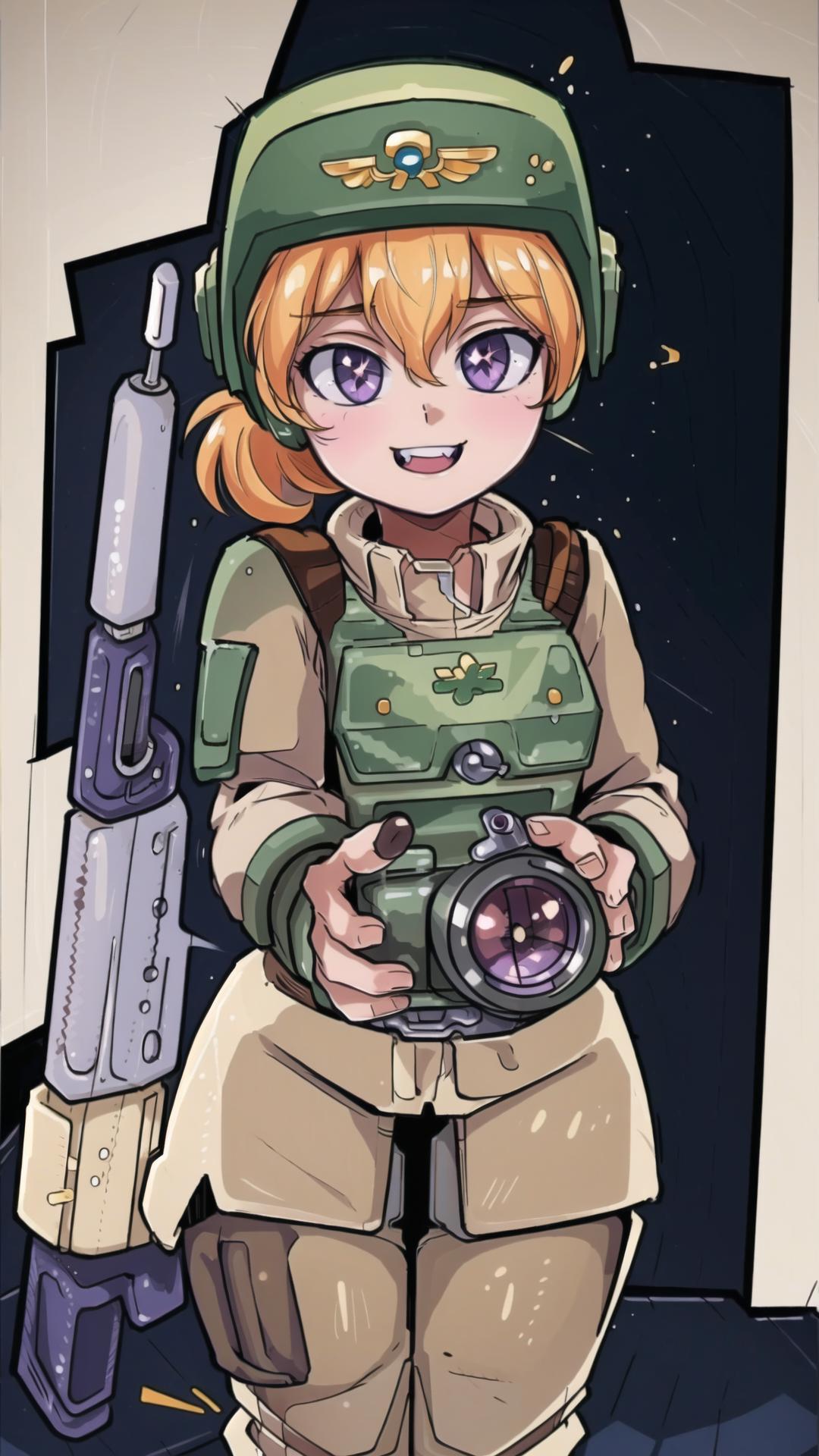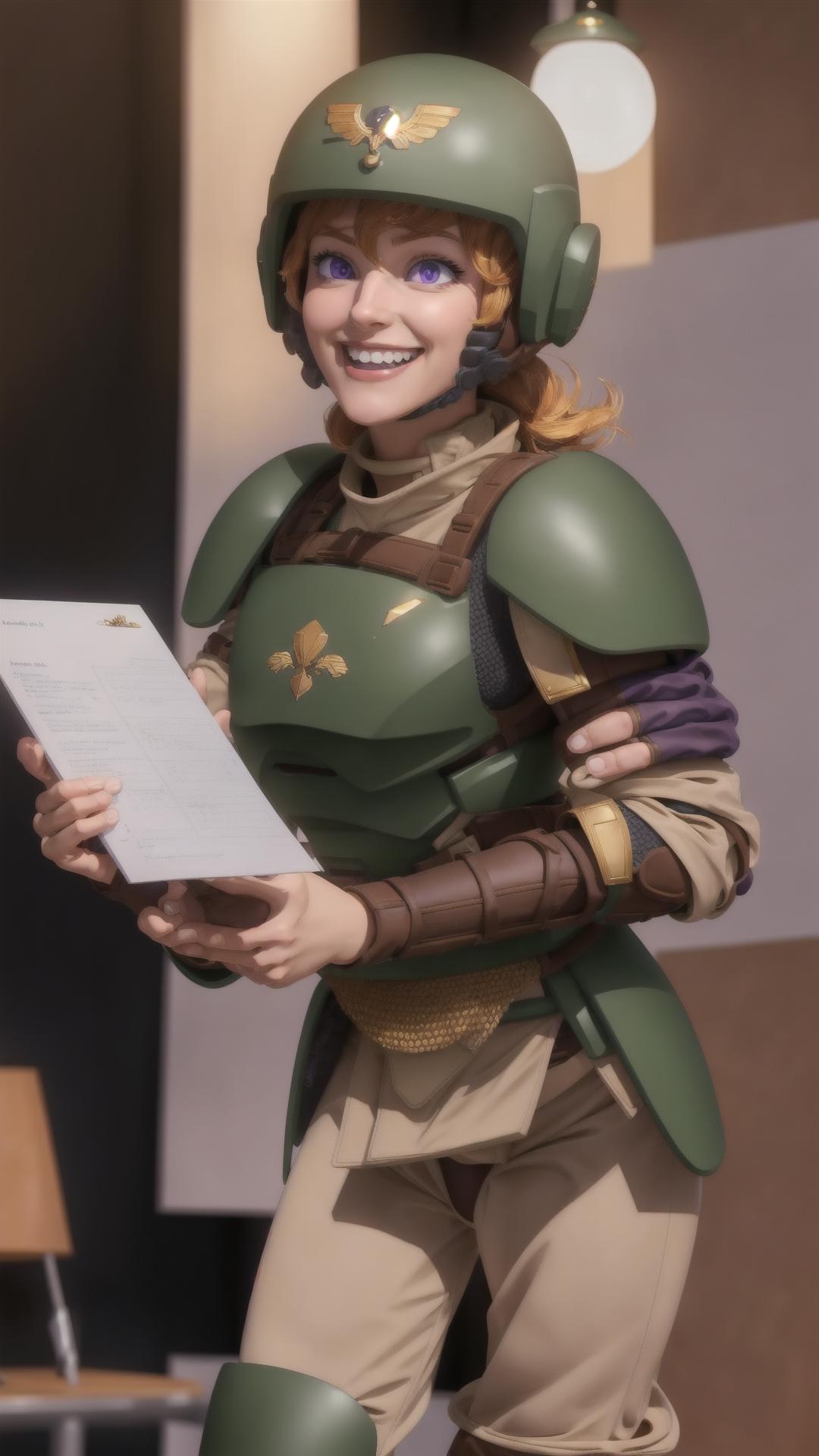 Support me: Ko-fi Commissions:here CadiaChan from Warhammer 40K Tested at 0.7-1 Trigger Words cadiachan, blonde hair,ponytail,purple eyes Add: beige pants, green helmet,beige skirt, Military helmet,military uniform,