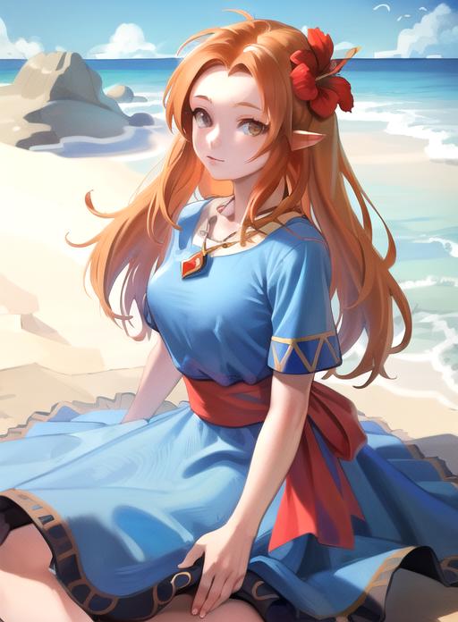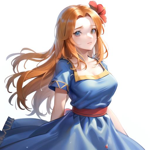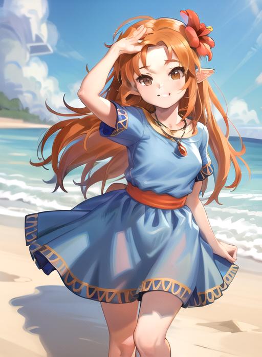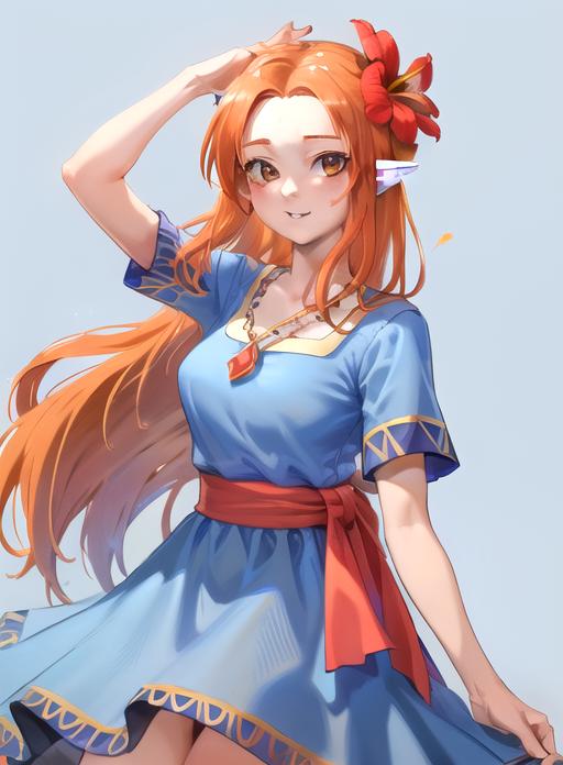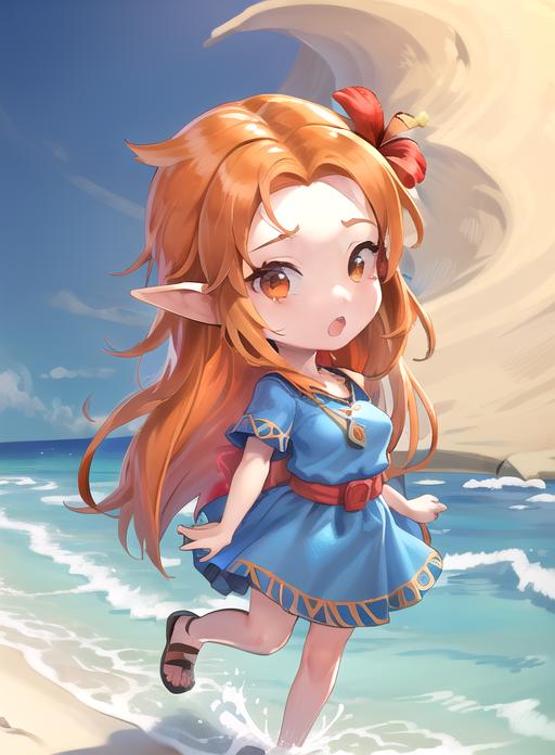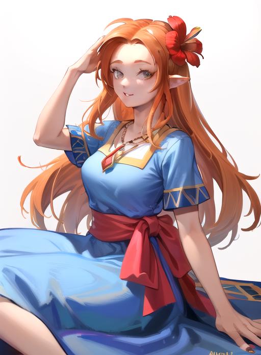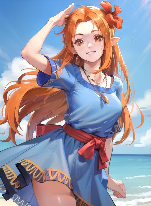 orange hair, brown eyes, pointy ears,