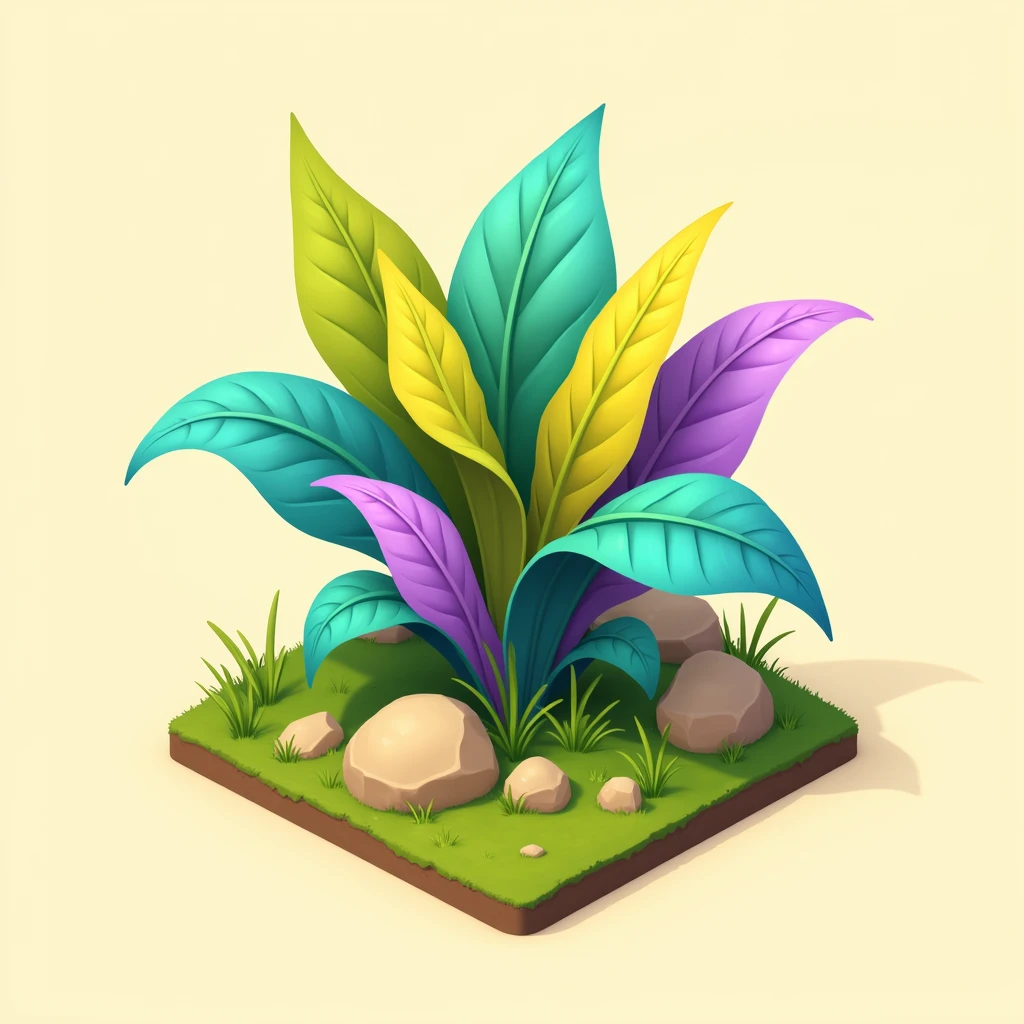 LoRA reproduces isometric casual mobile game plants on Flux.1 D based models,