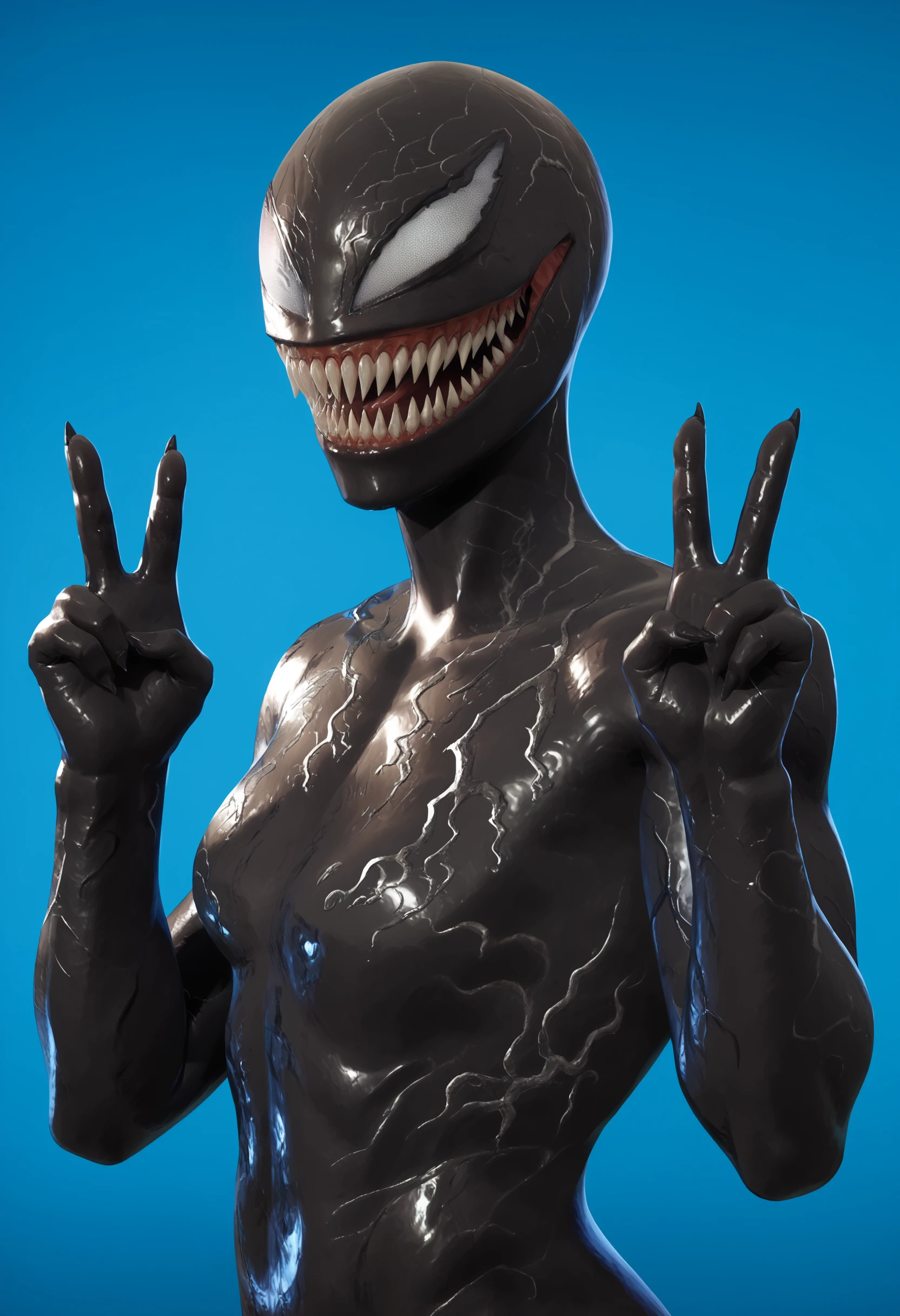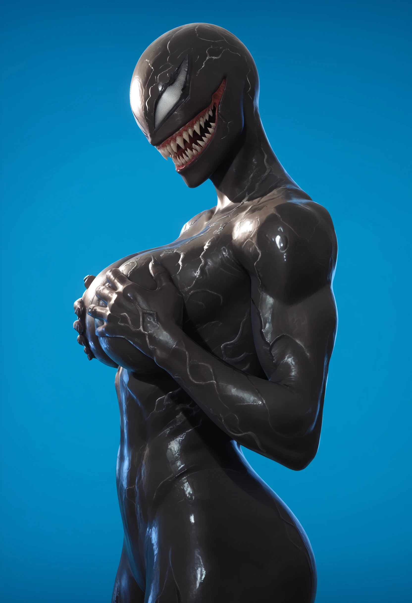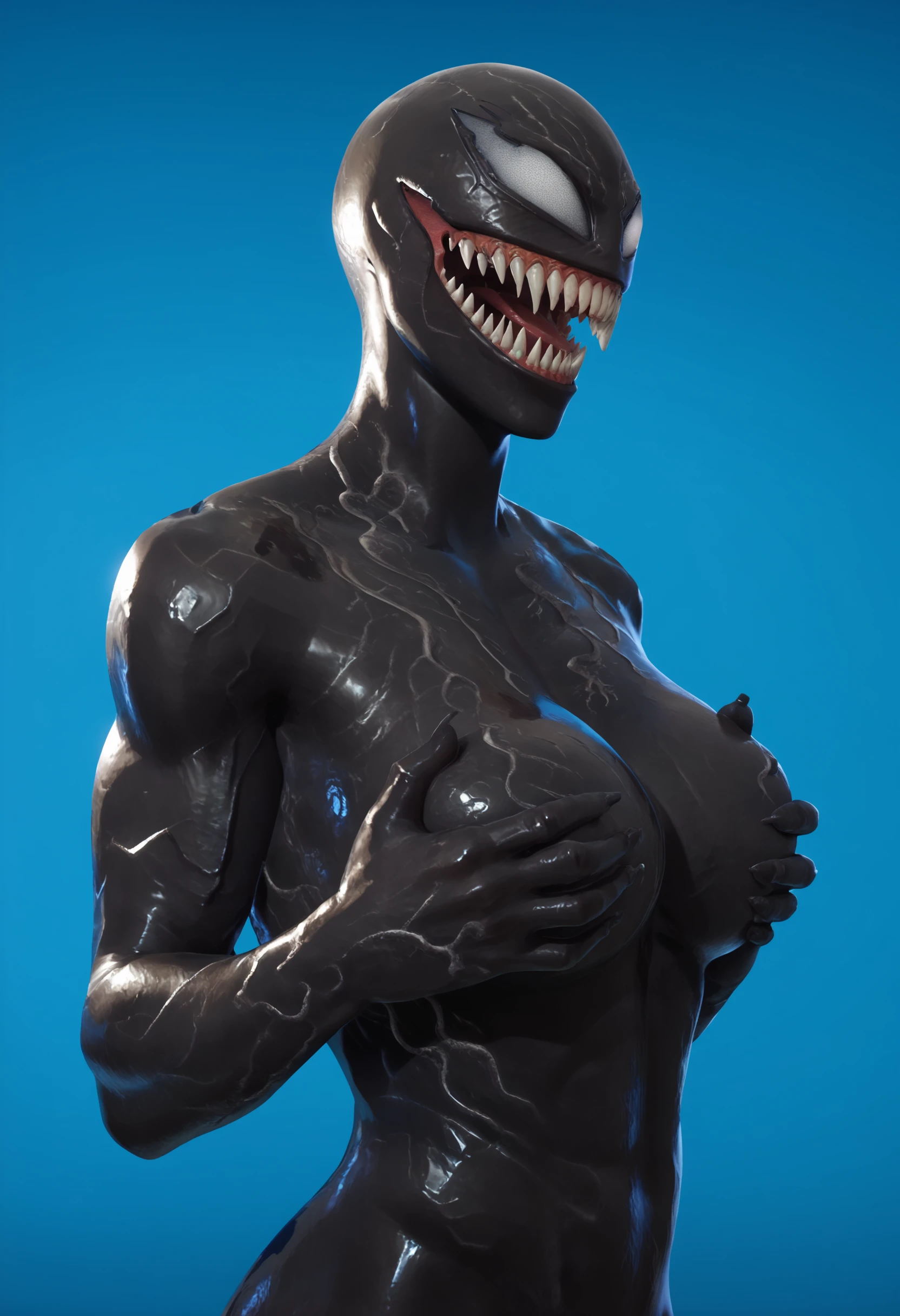 v3ilf, colored skin, black skin, 1girl, breasts, shiny skin, claws, sharp teeth,