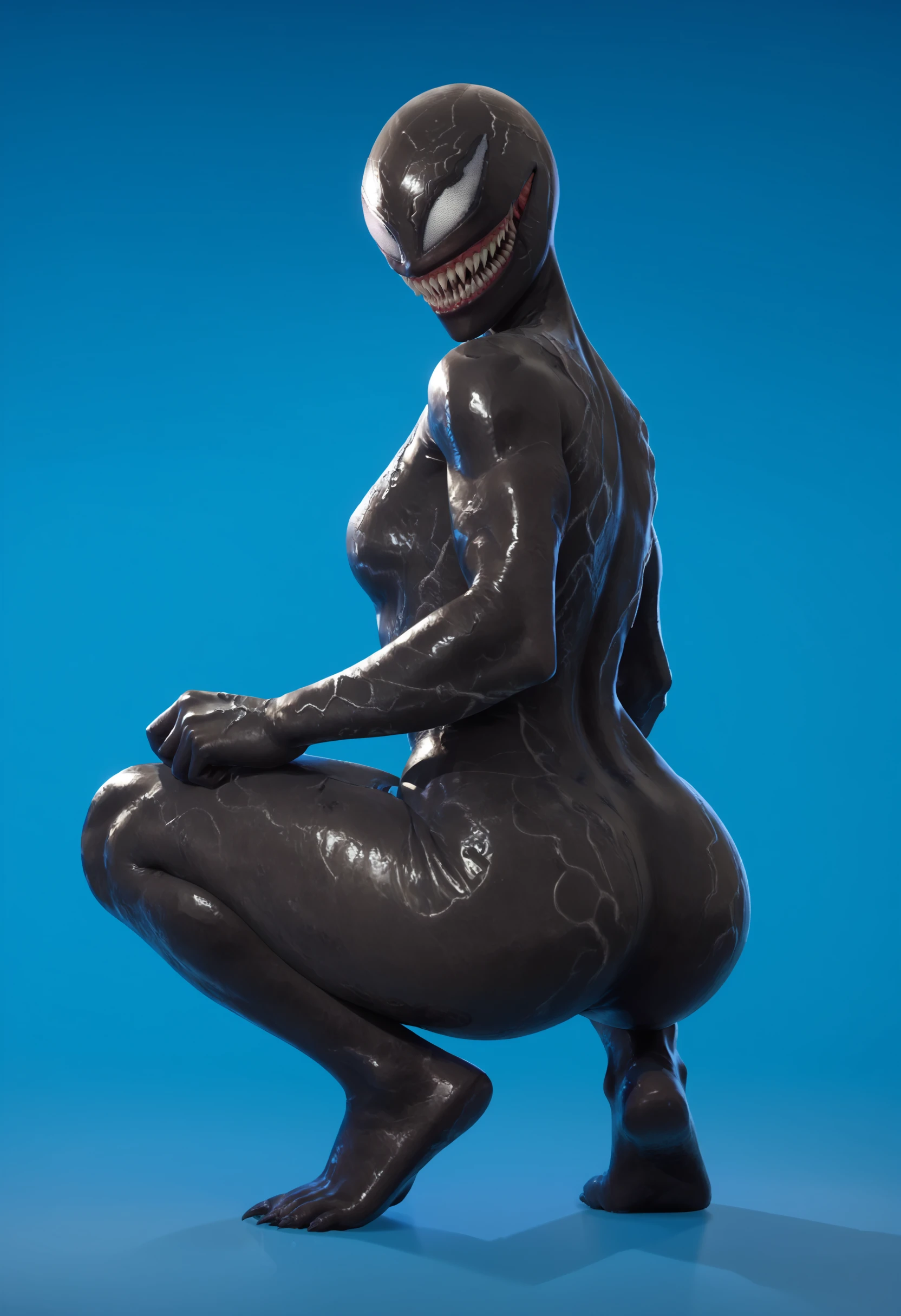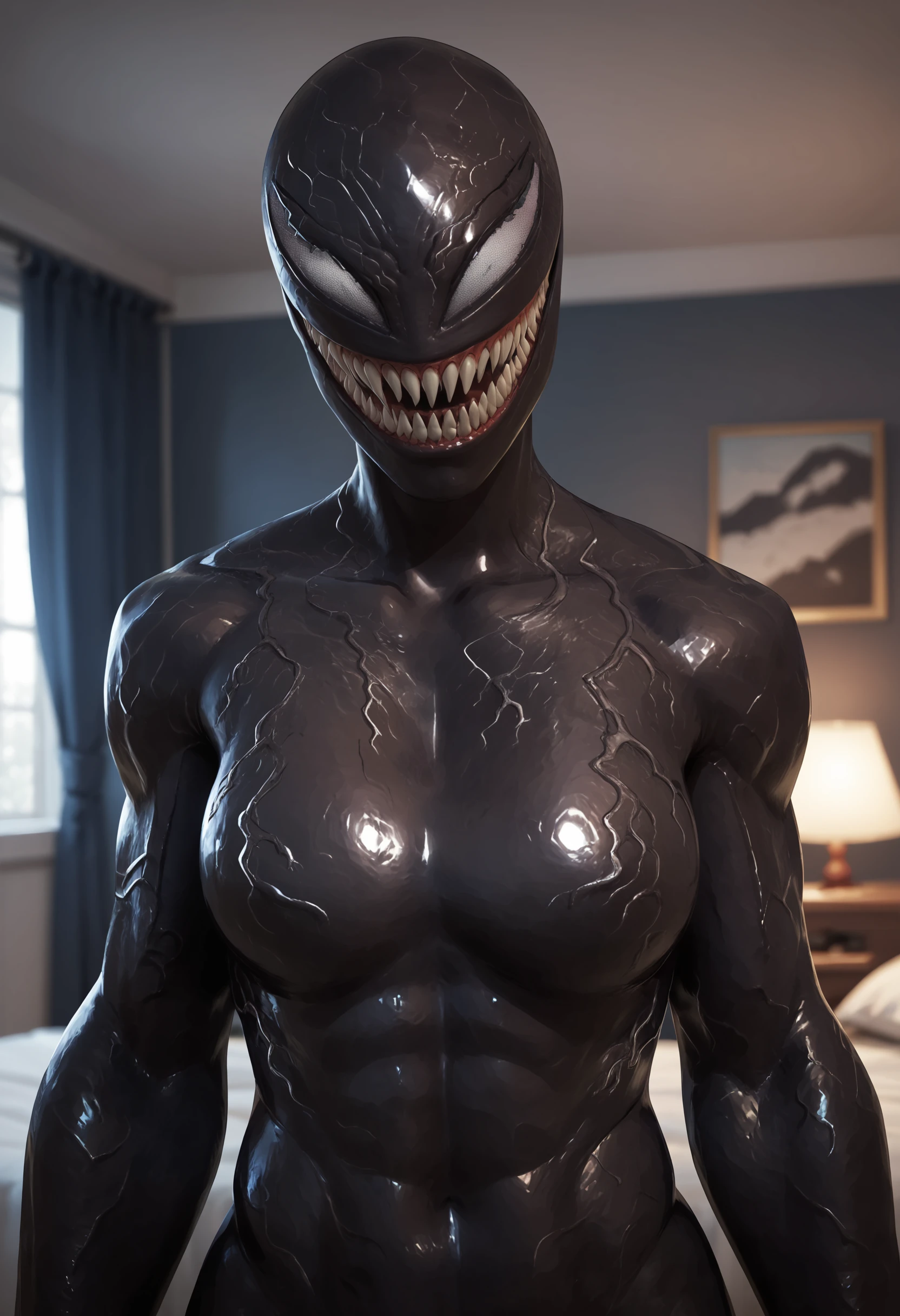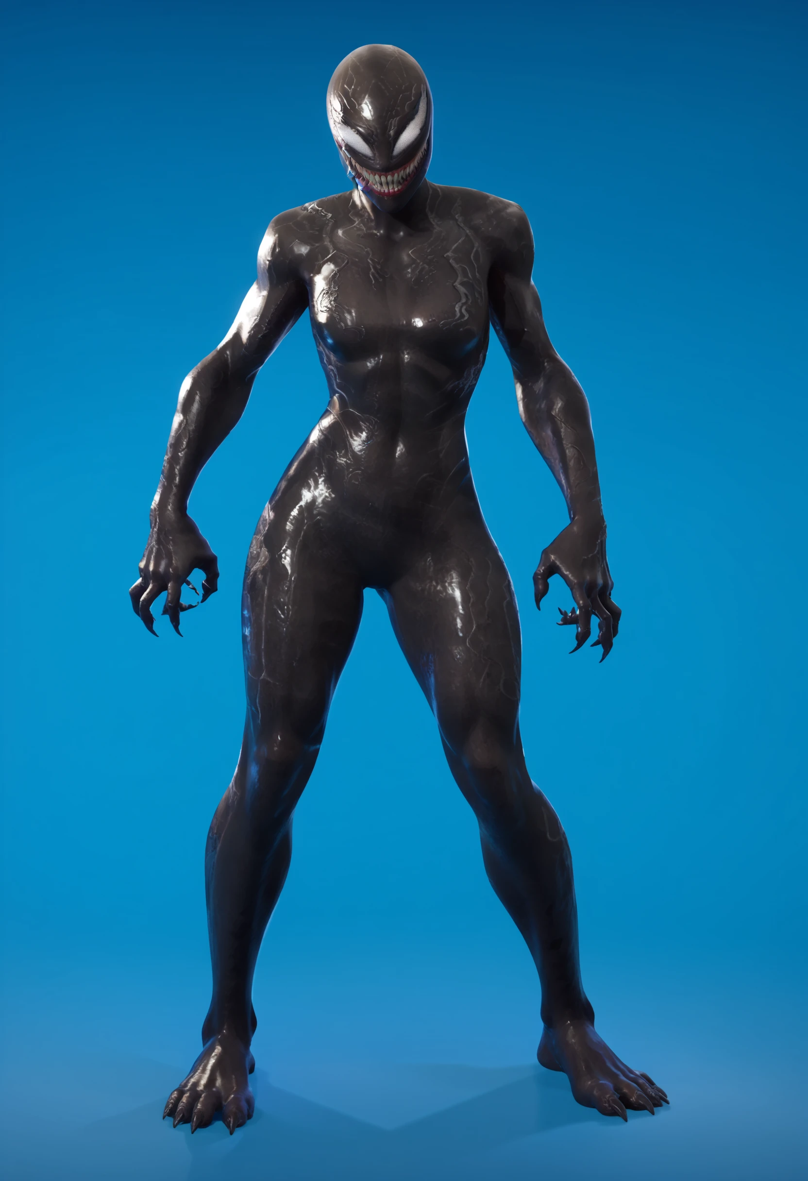 v3ilf, colored skin, black skin, 1girl, breasts, shiny skin, claws, sharp teeth,