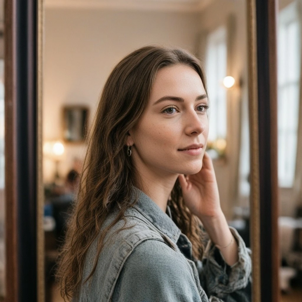 Realistic AI model trained on a brunette female subject with natural skin texture, subtle freckles, and soft facial features. Designed for generating consistent portraits, selfies, and mirror photos in realistic settings.