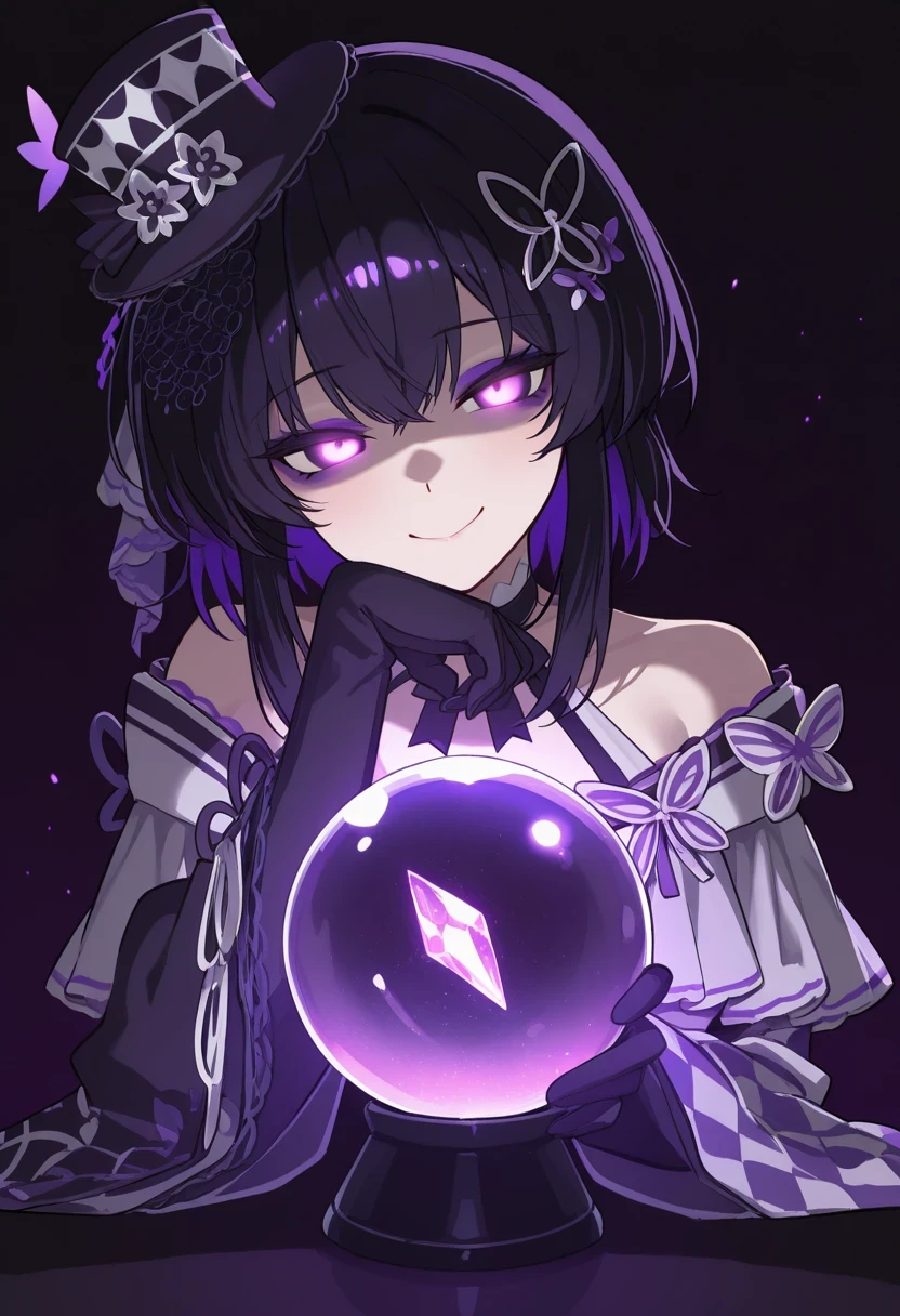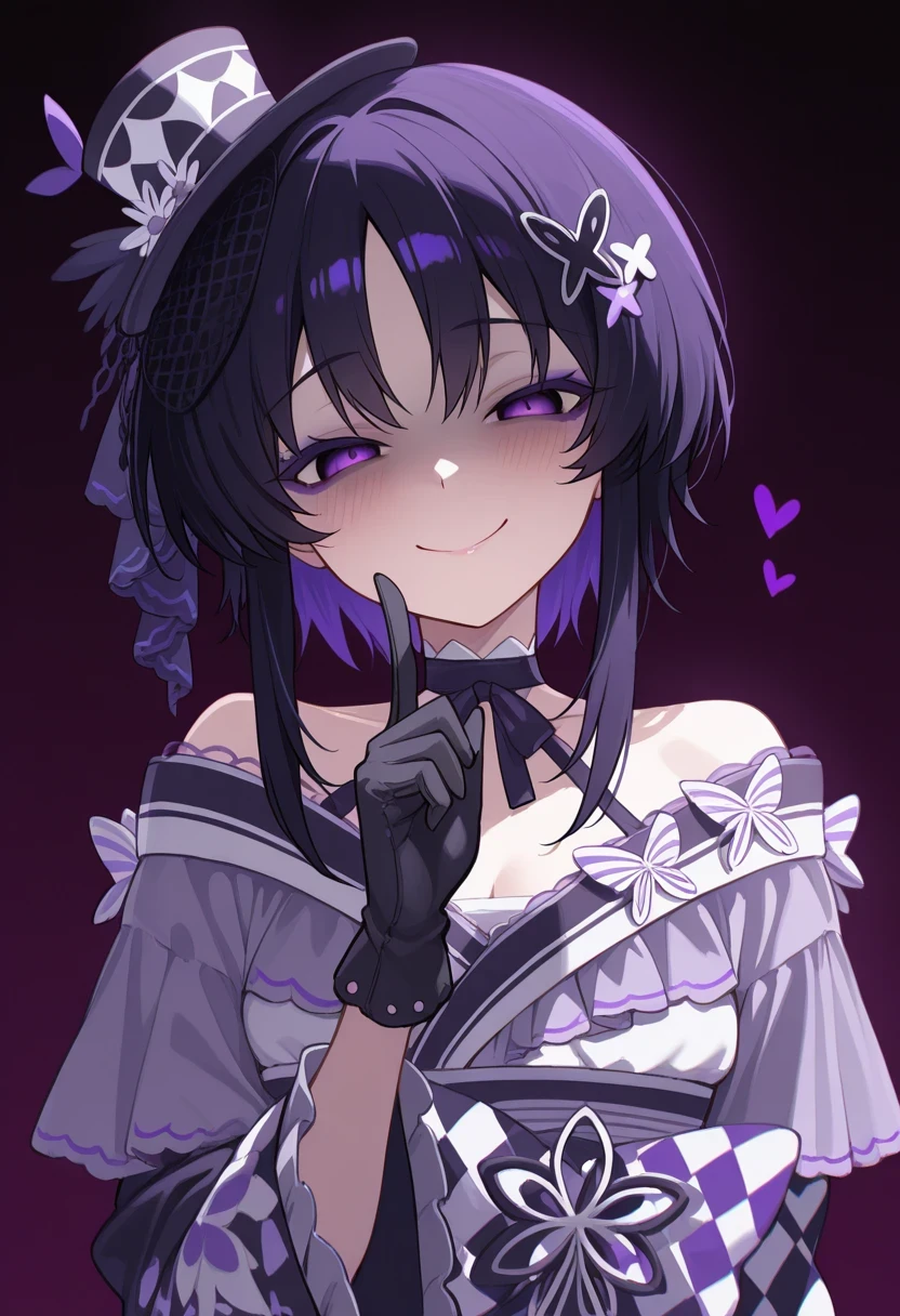 mini_top_hat,japanese_clothes, kimono, black gloves,Description