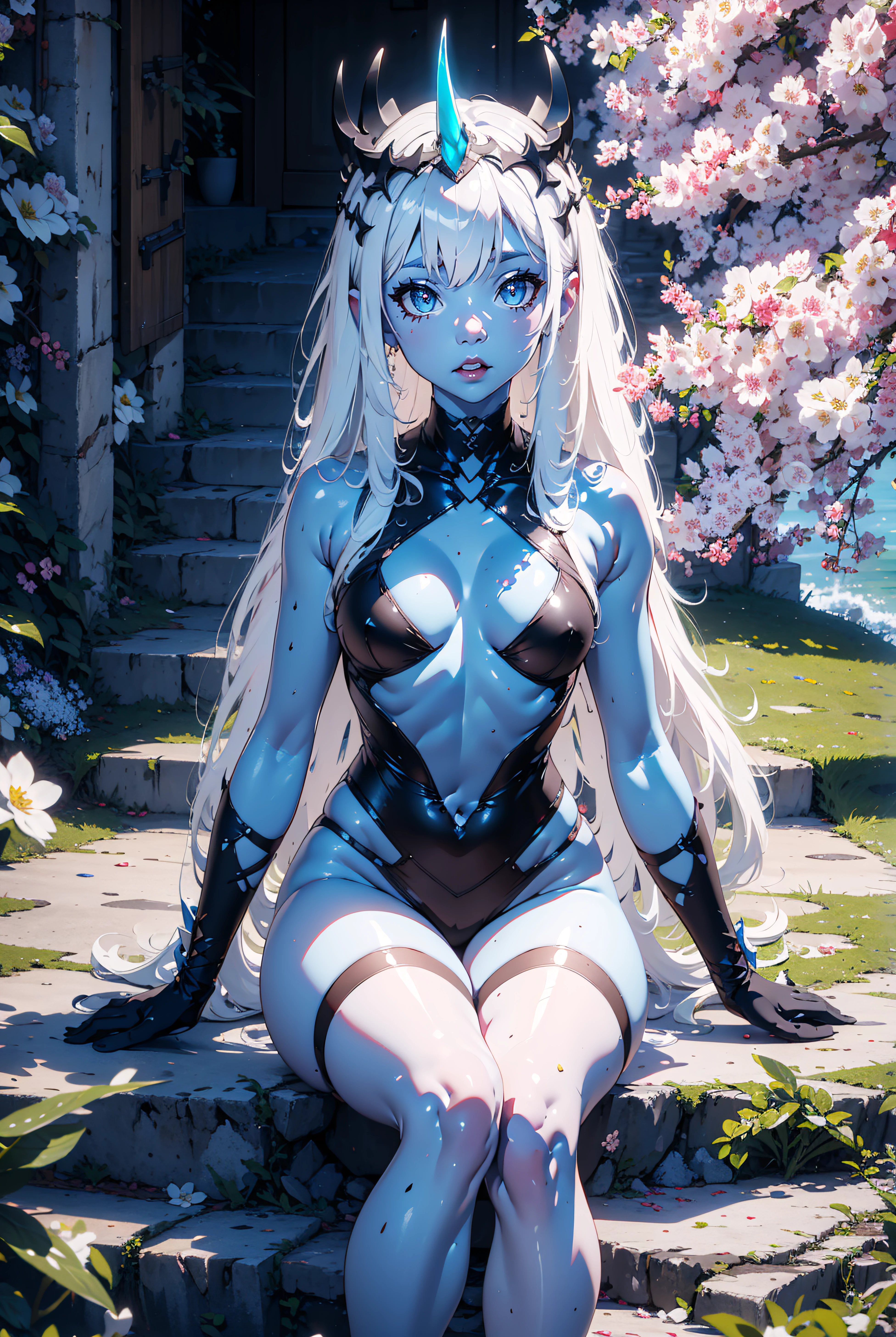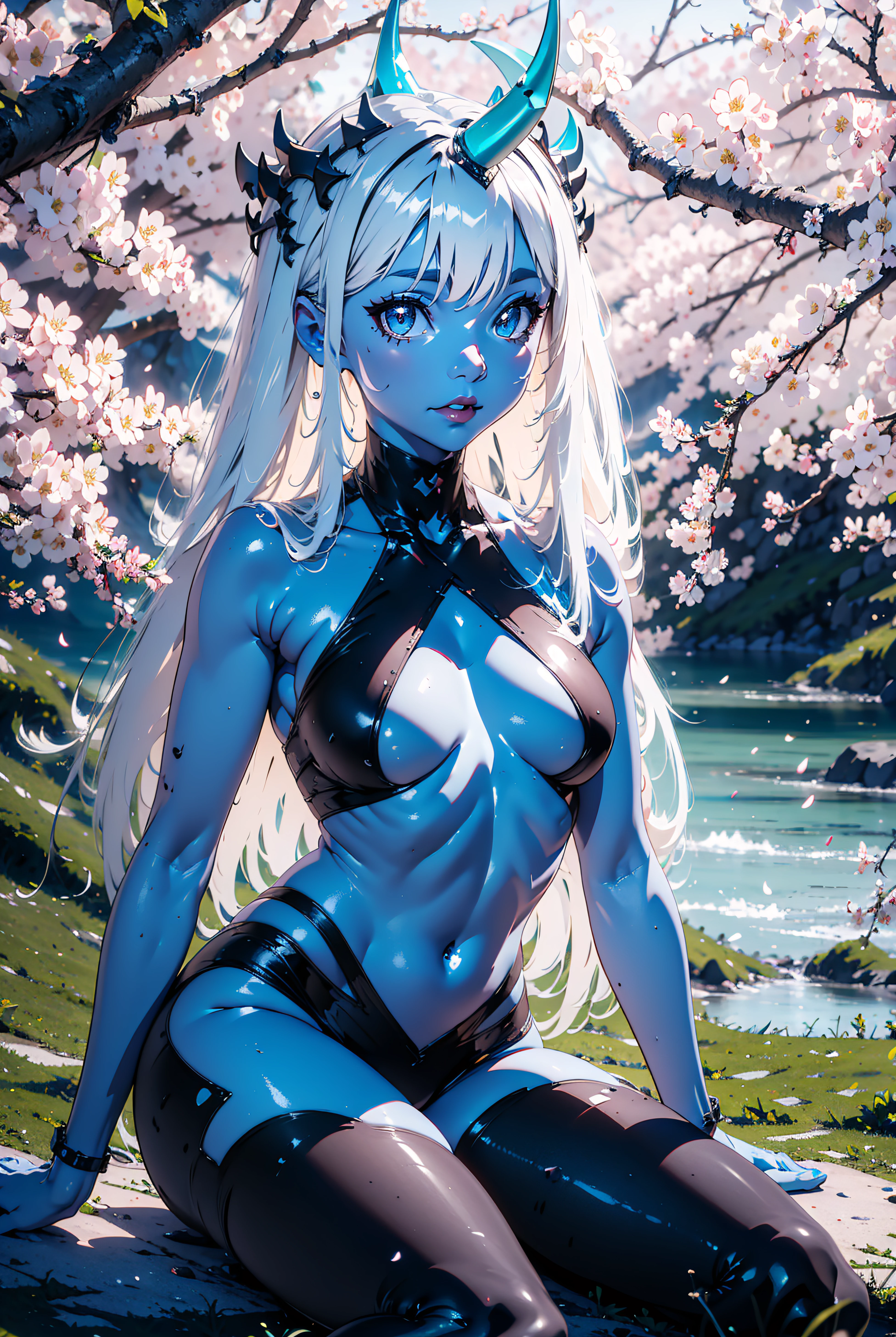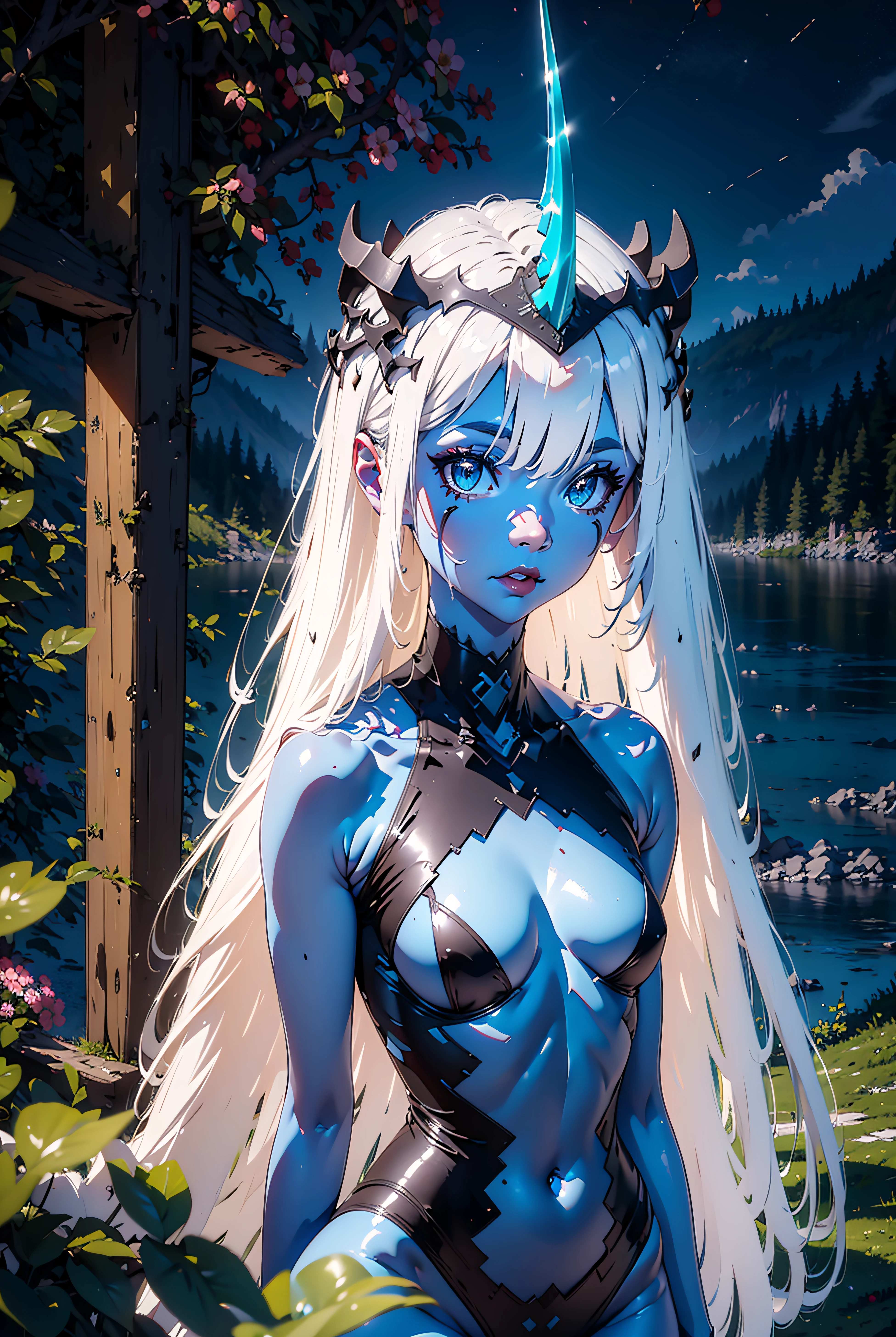triggerwords that feel necessary: princess001def,small breasts, blue horns, blue skin,long hair, single horn,