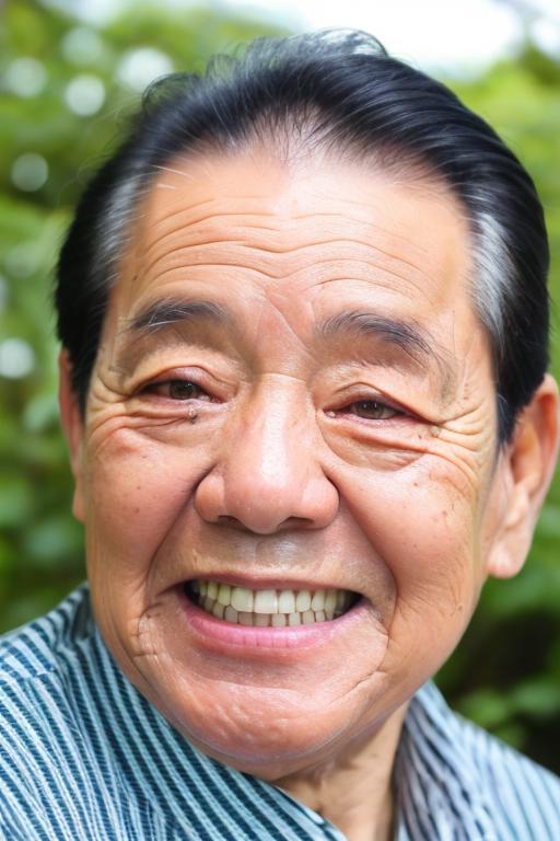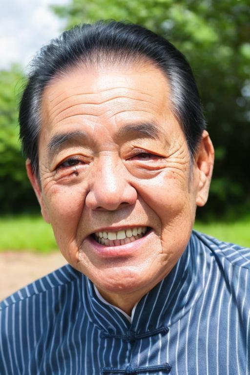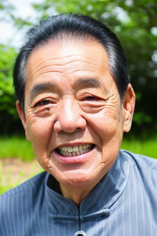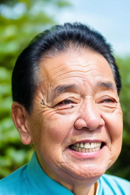 采用了60+图片训练这个lora,基本都是老爷子的笑脸,所以很容易出笑脸图,想出其他面部形象的图,只能抽奖了。
