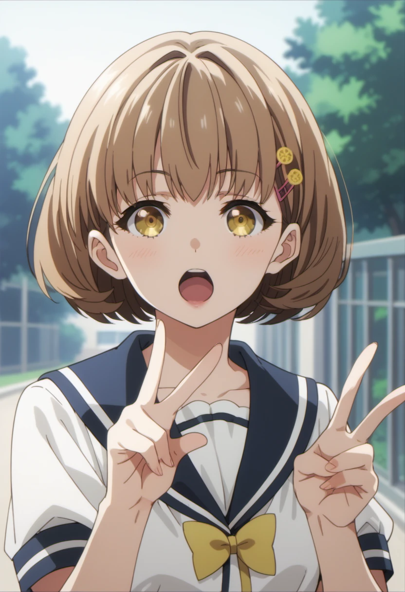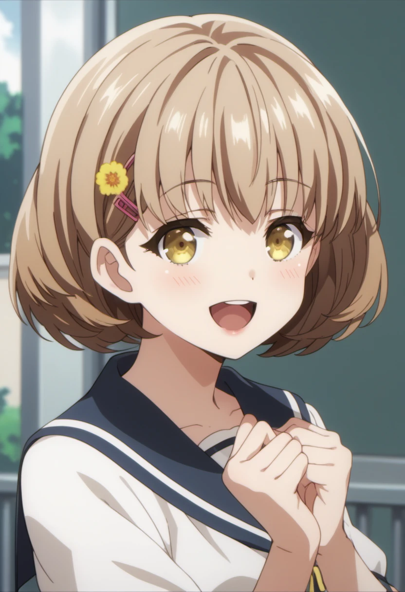 Trigger Words: kamata kimie, short hair, brown hair, yellow eyes