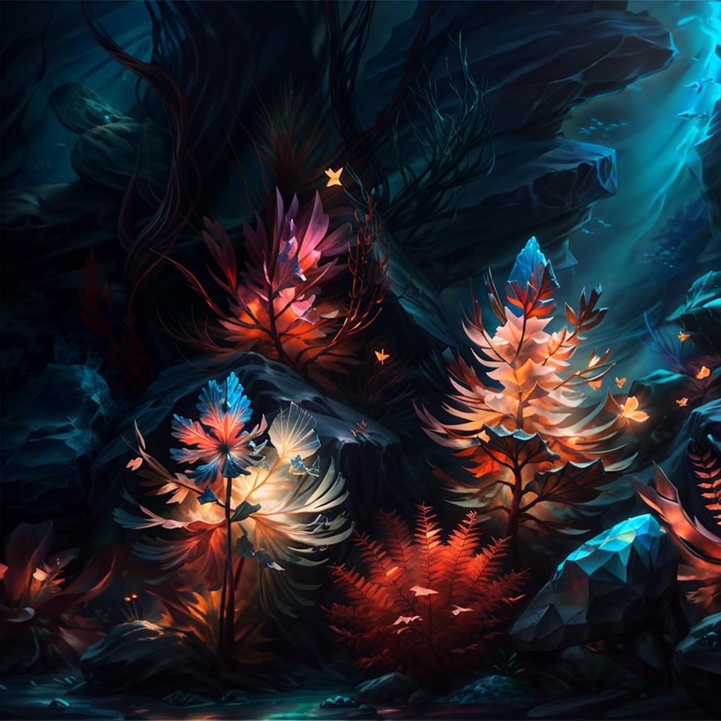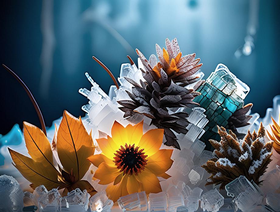 It is recommended to write the following tokens: flower, ice, vegetation, mashrooms, dimmed, lowkey, vignette, dark, glow, water, detailed.