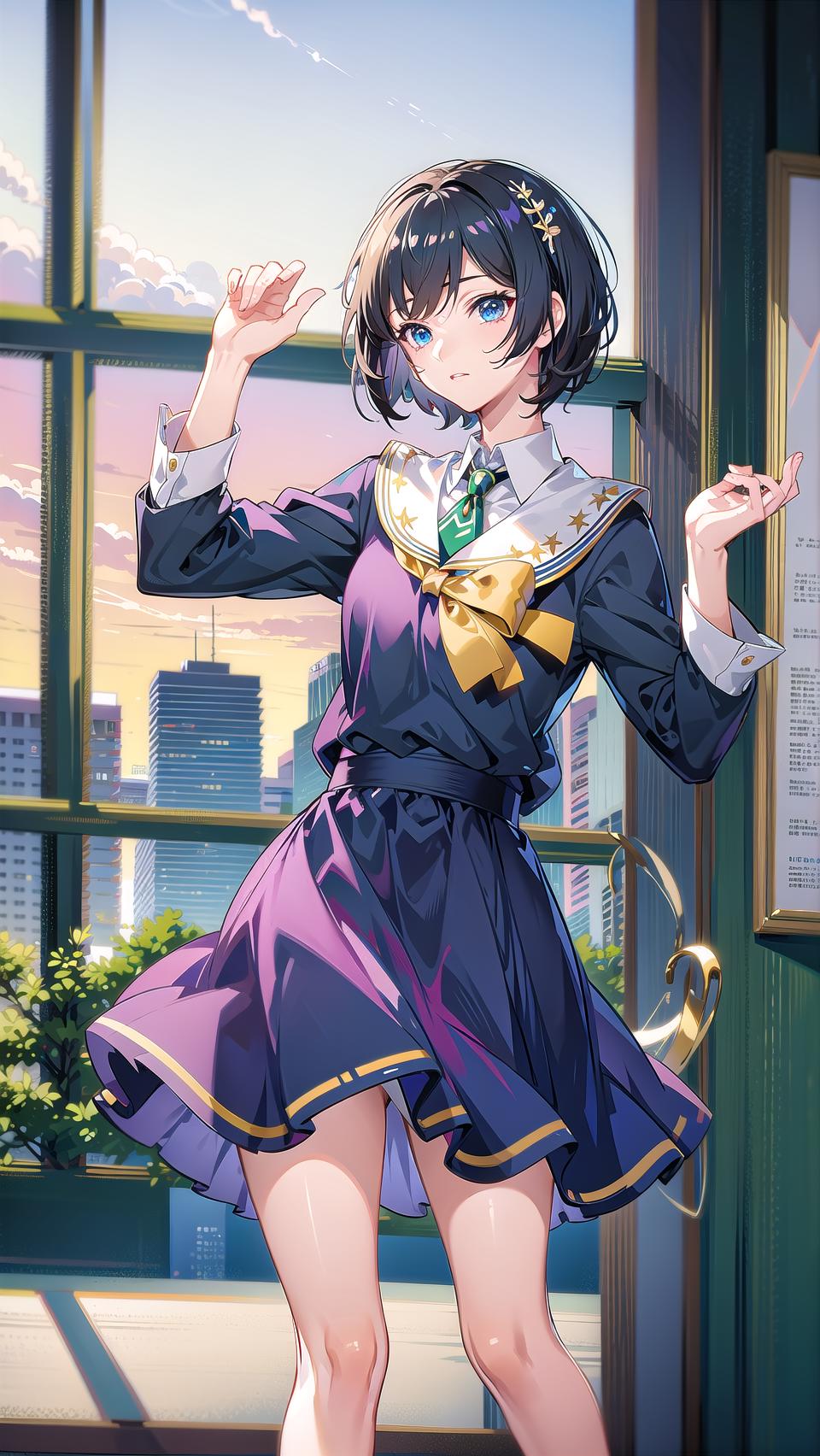 Prompt: meteoraReCreators, 1girl, white casual_outfit, blue_eyes, long_sleeves,night sky background, stars,light, <lora:MeteoraLoRA-000008:0.8>, close up,