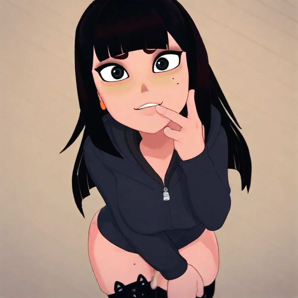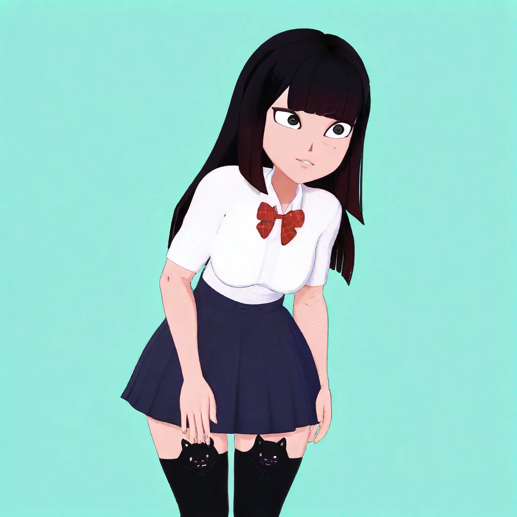 Dark stockings or socks,wearing latex gloves,meru The Succubus (1girl),black hair, short hair, black eyes, mole, mole under eye, , meru, diana merunyaa, freckles, smirk, standing, blushing face, front view, long hair, long hair, long hair, school background, white shirt, red bow tie, short sleeves, navy blue skirt, high waist skirt, black thighhighs, twinbraids, twinbraids,tan skin,skin tones,tan white skin,1girl,1boy,hetero,skirt,skirt lift,sex,clothed sex,clothed female nude male,implied sex,wearing latex gloves,cum in panties,cum on panties,cum drip,tan human skin,tan skin,normal skin