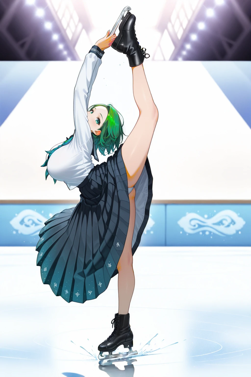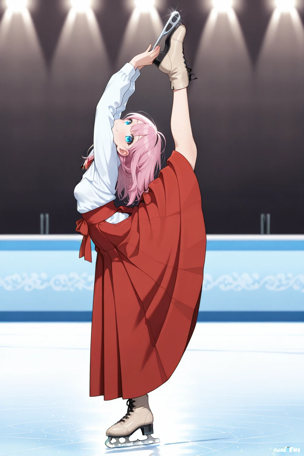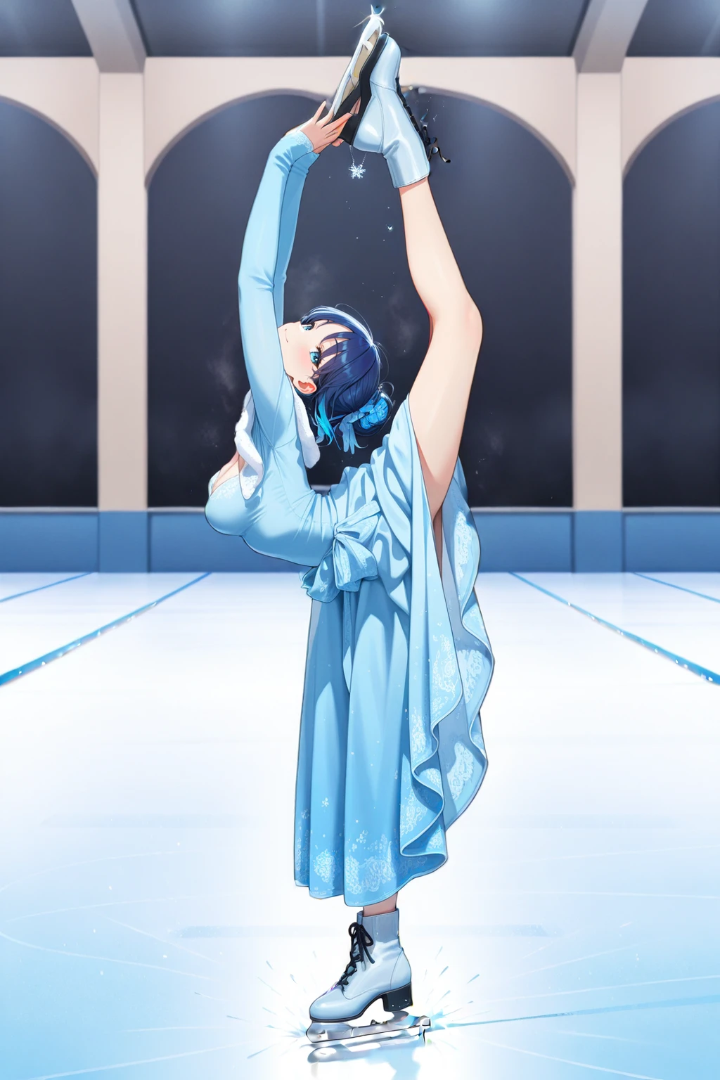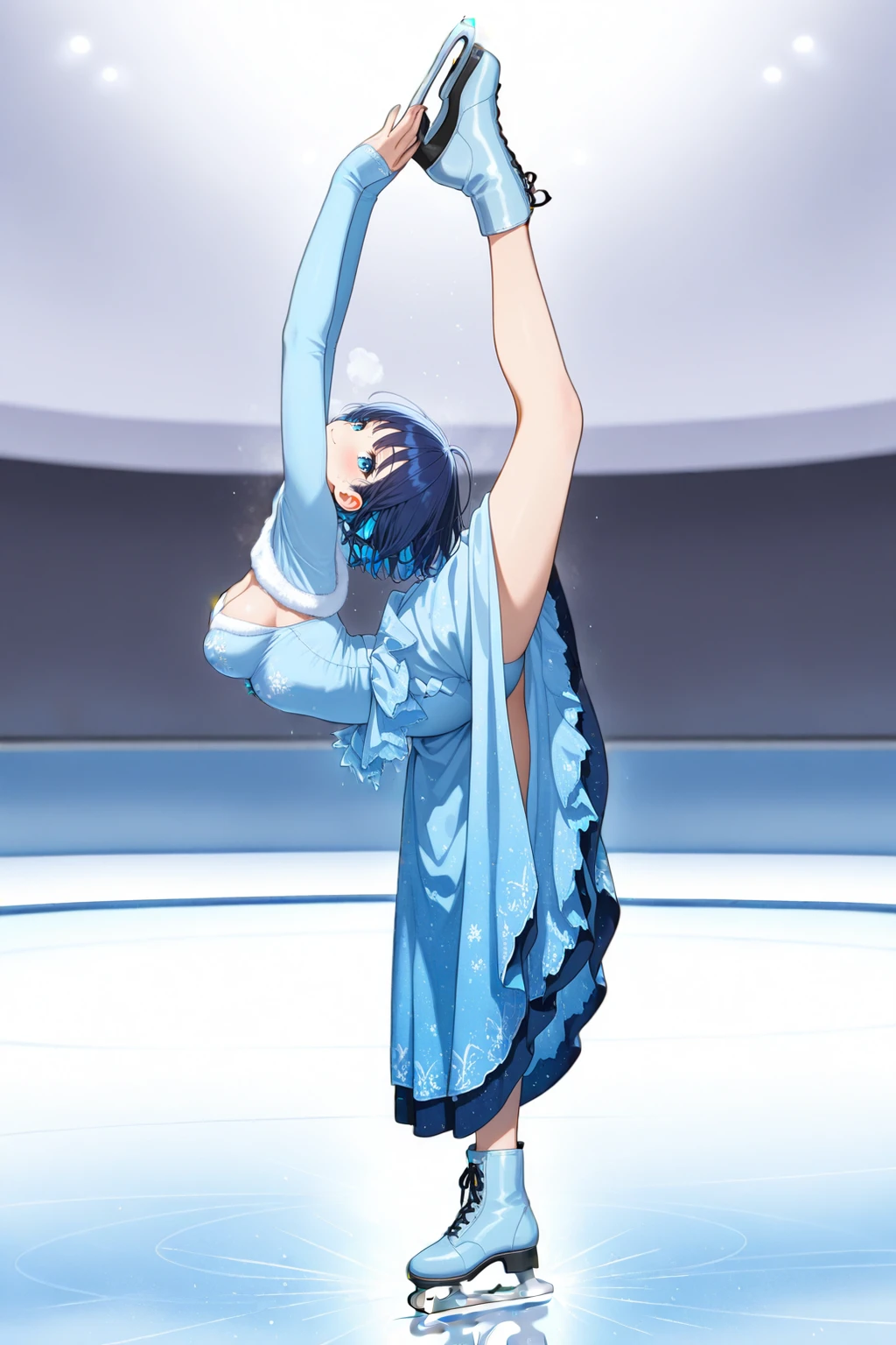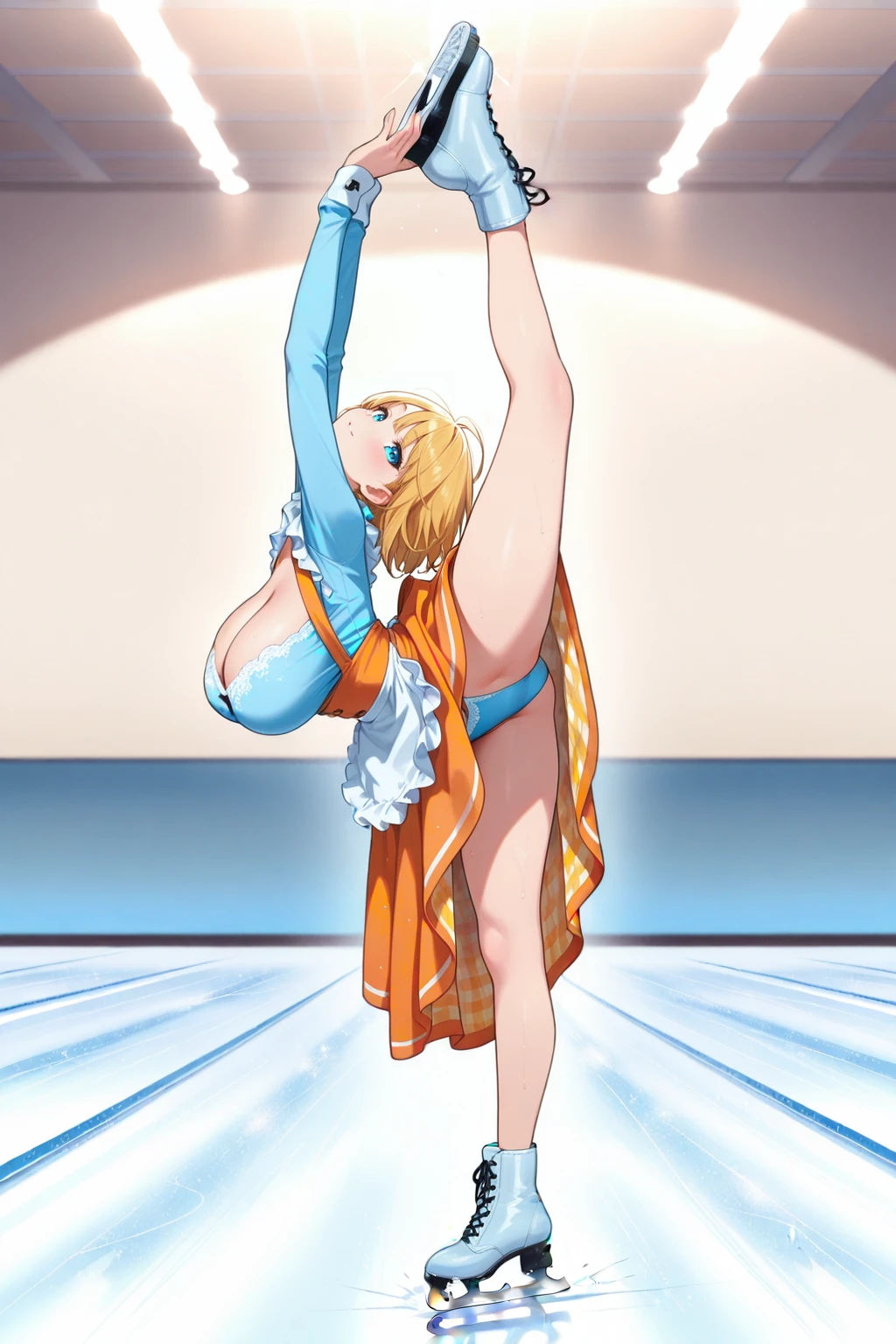元画像からとしてはアイススケートのエッジ部分の上部空間を両手で掴む、両手式のビールマンスピン