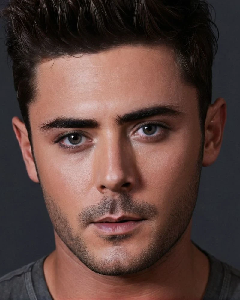 Zachary David Alexander Efron is an American actor. Efron began acting professionally in the early 2000s and rose to prominence as a teen idol for his leading role as Troy Bolton in the High School Musical film series. During this time, he also starred in the musical film Hairspray and the comedy film 17 Again. This lora focuses on his earlier (sexier) face.