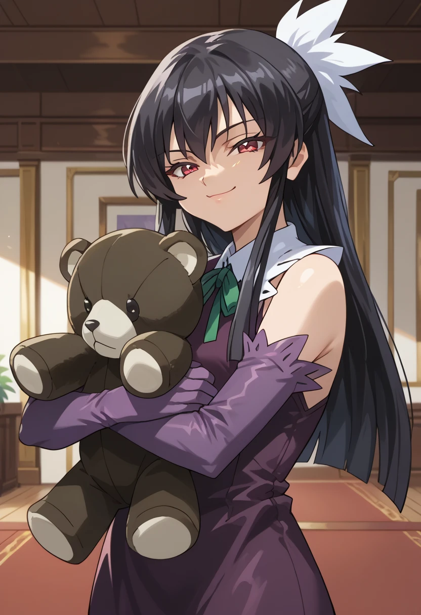 Cecil: vongielentwin, black hair, long hair, dark purple clothes, green ribbon, bare shoulders, long gloves, red eyes