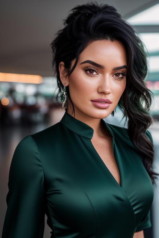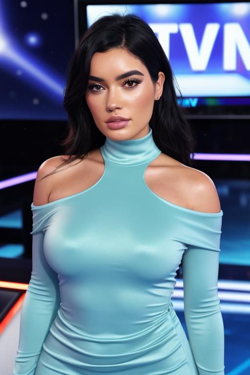 As as a famous bikini model, the model skews a little "cleavagey", since there are practically no pictures on the internet of her otherwise. It is SFW, but please be aware you may need to specify clothing with some weight to get the results you are looking for.