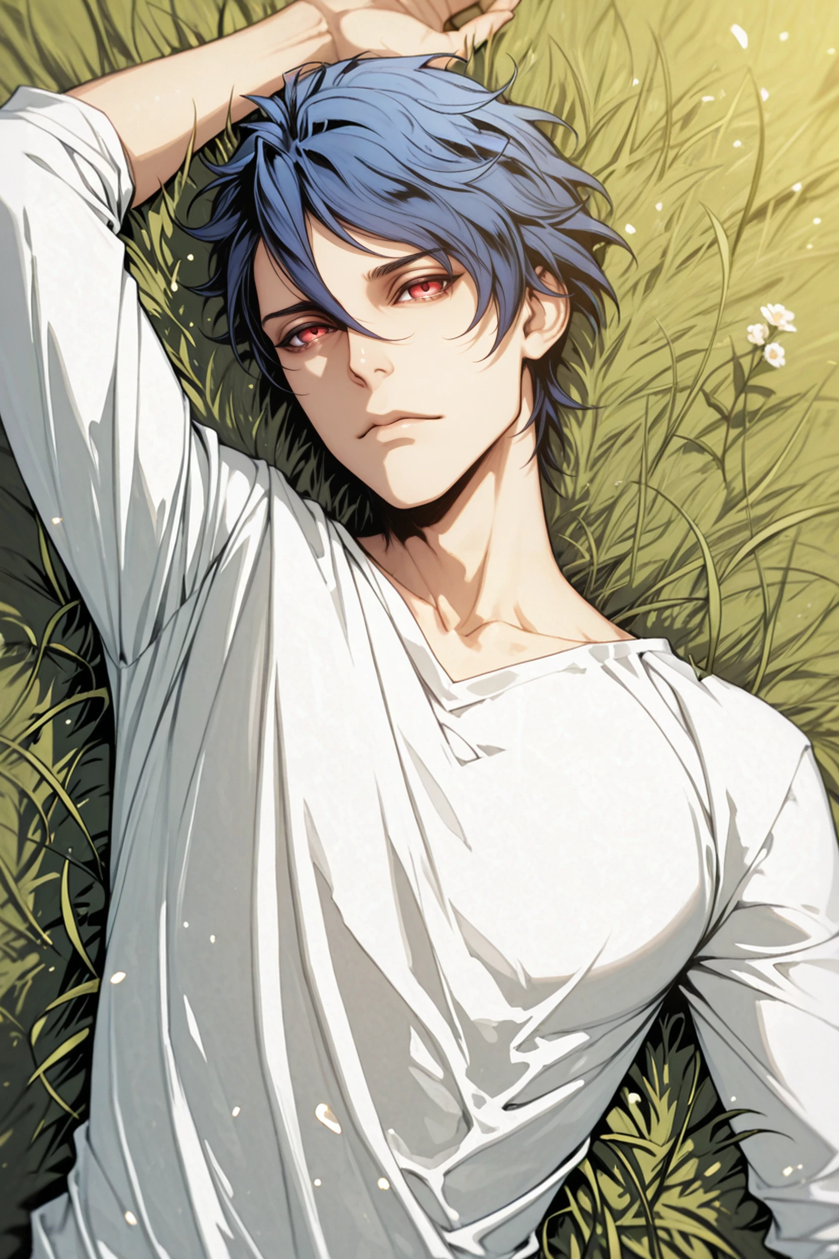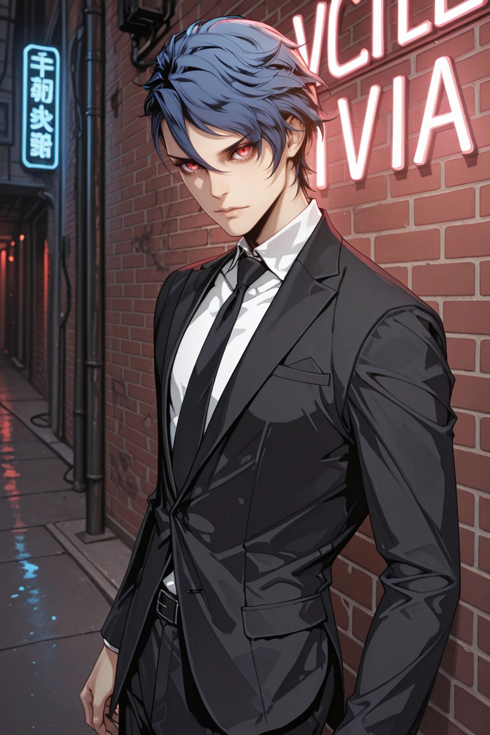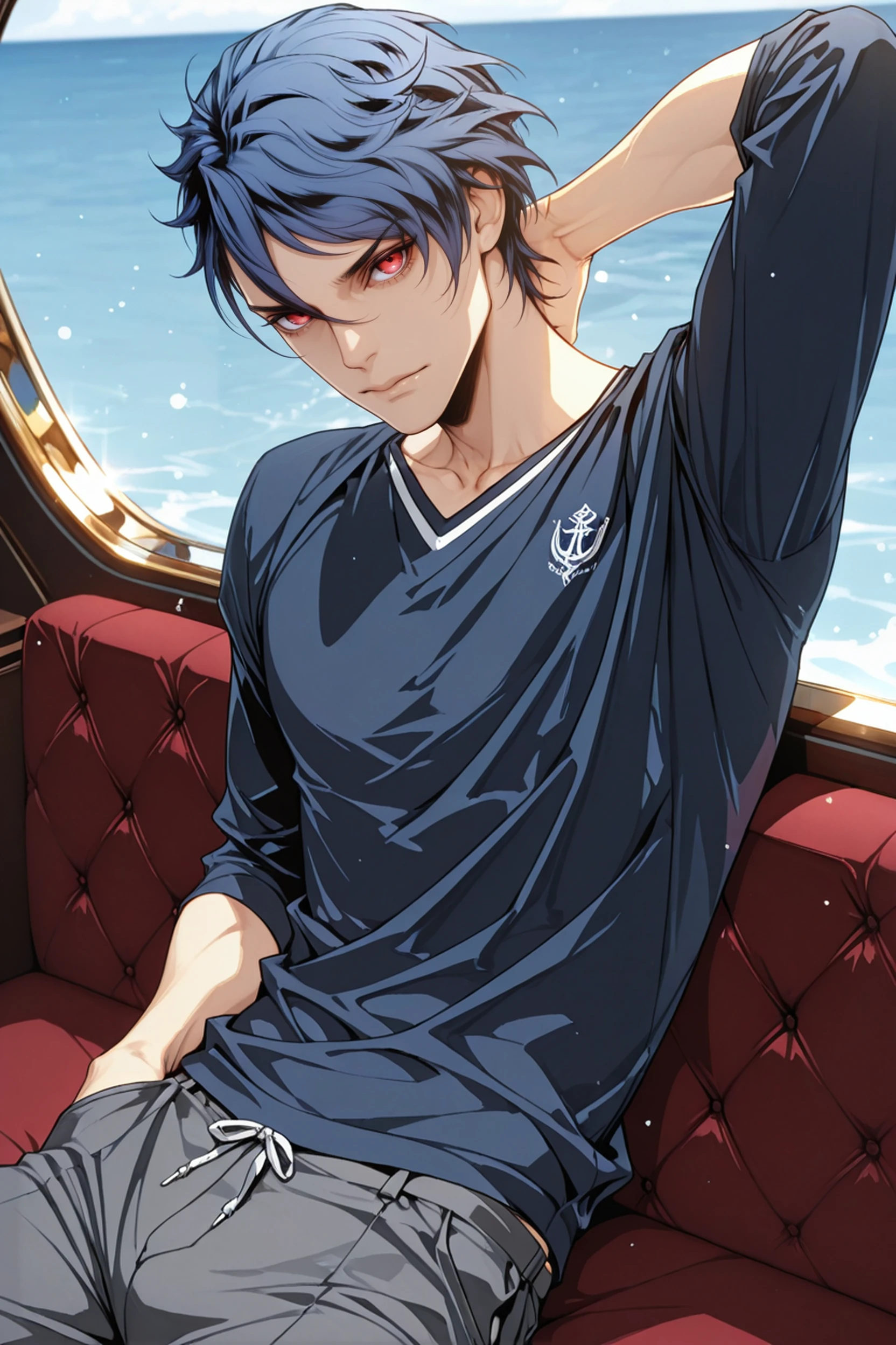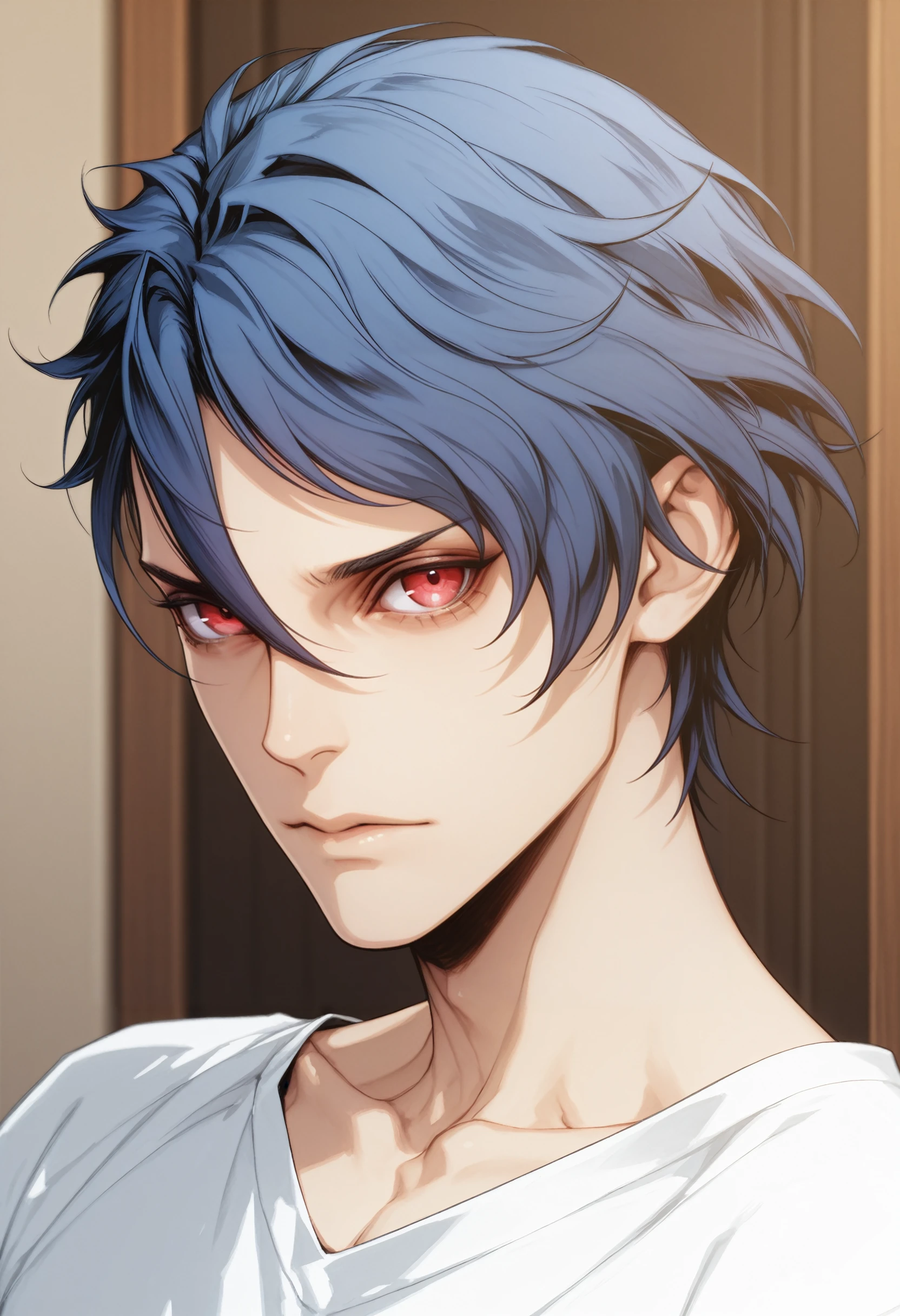 VBIchiya, 1boy, red eyes, blue hair, short hair