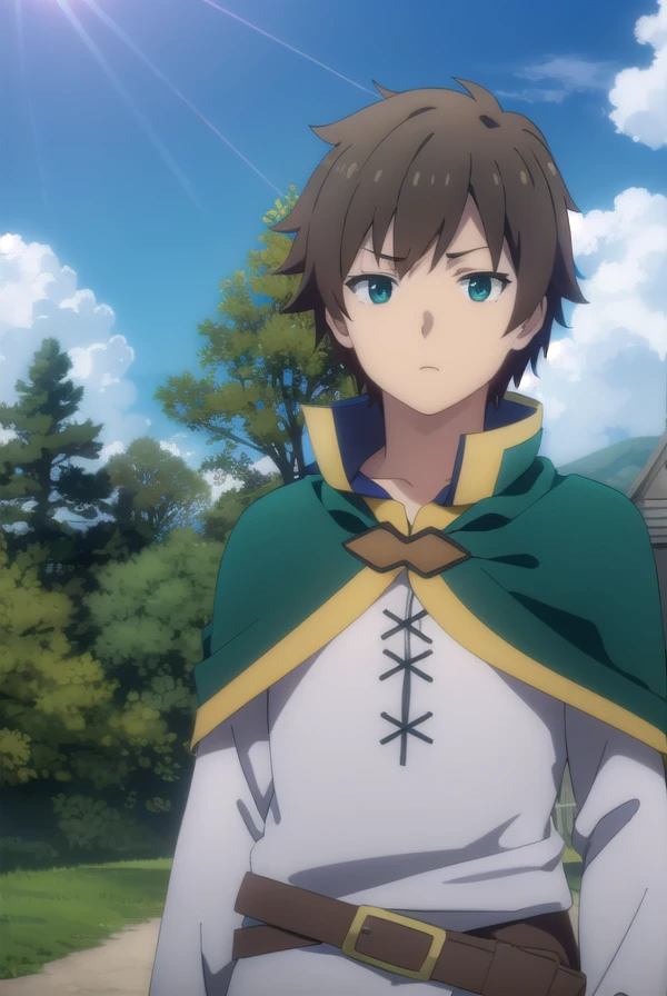 kazuma satou, short hair, brown hair, (green eyes:1.3), male focus,