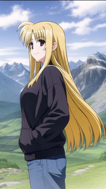 This LoRA is based on screen captures from Magical Girl Lyrical Nanoha StrikerS and is trained on keyframes of Fate Testarossa, a.k.a. Lightning 1. The strength of the LoRA should be anywhere between 0.6 and 0.8. The recommended tags are: fate testarossa, 1girl, long hair.