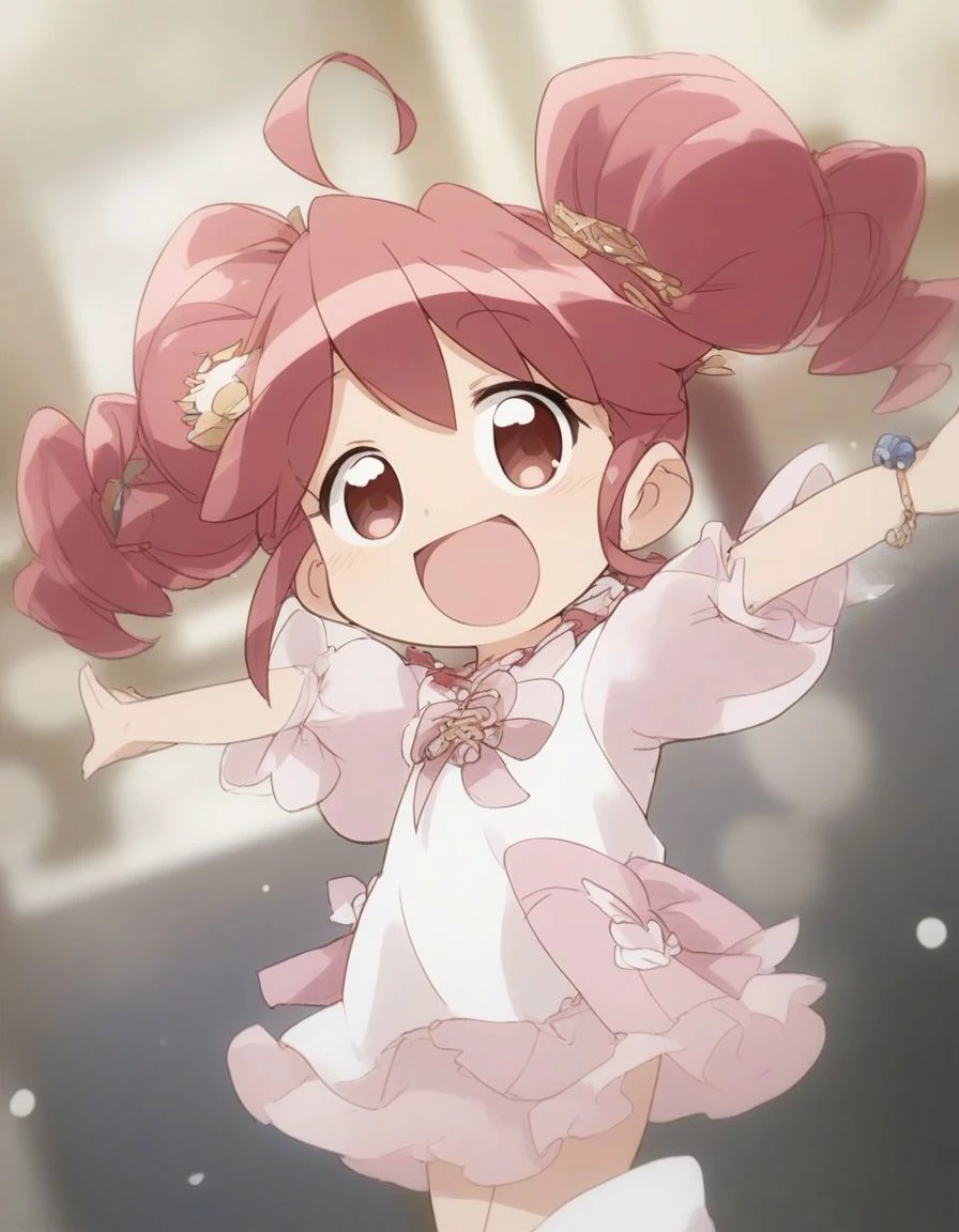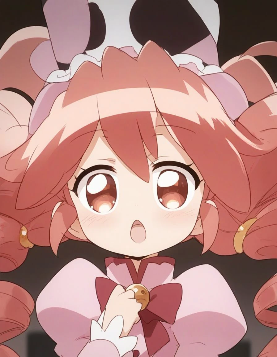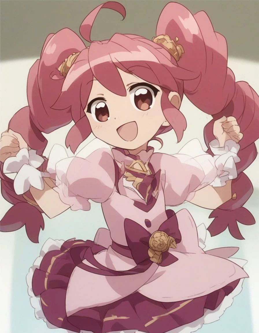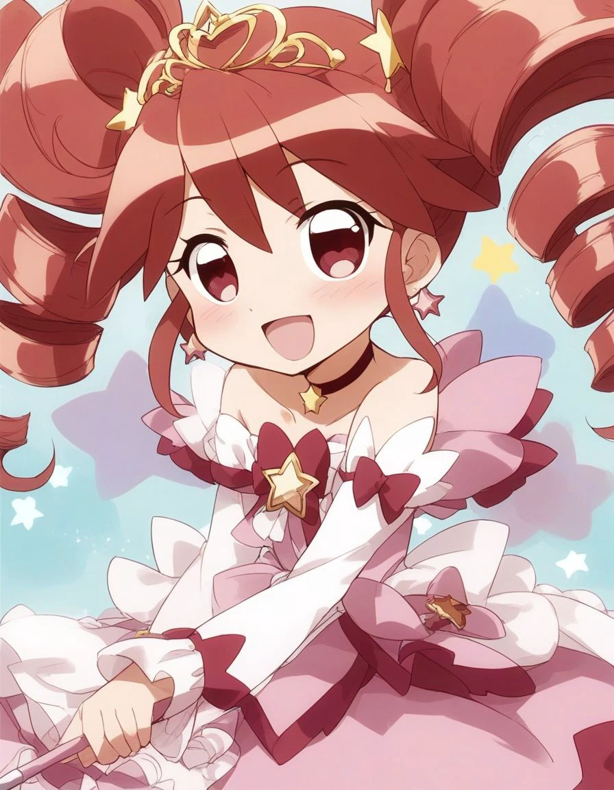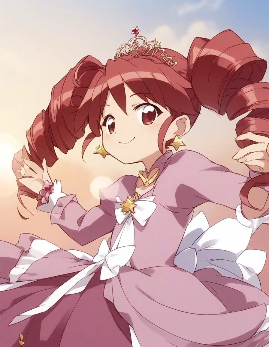 Fine, 1girl, solo, red eyes, drill hair, twin drills, red hair, twintails,