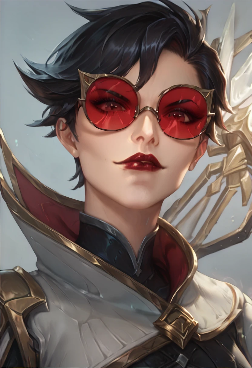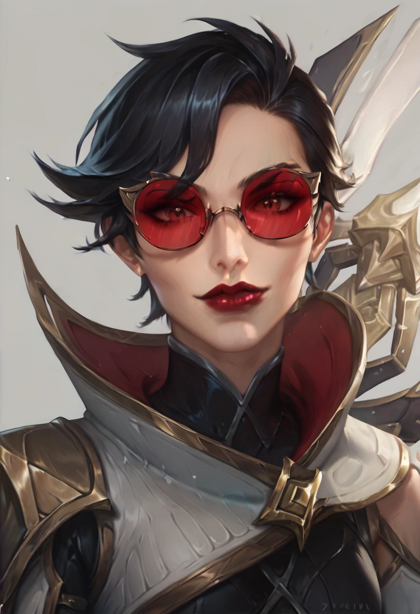 For a request! Tags: red lipstick, SentinelVayne, black hair, brown hair, short hair, circle_tinted_glasses, circle framed glasses, red sunglasses