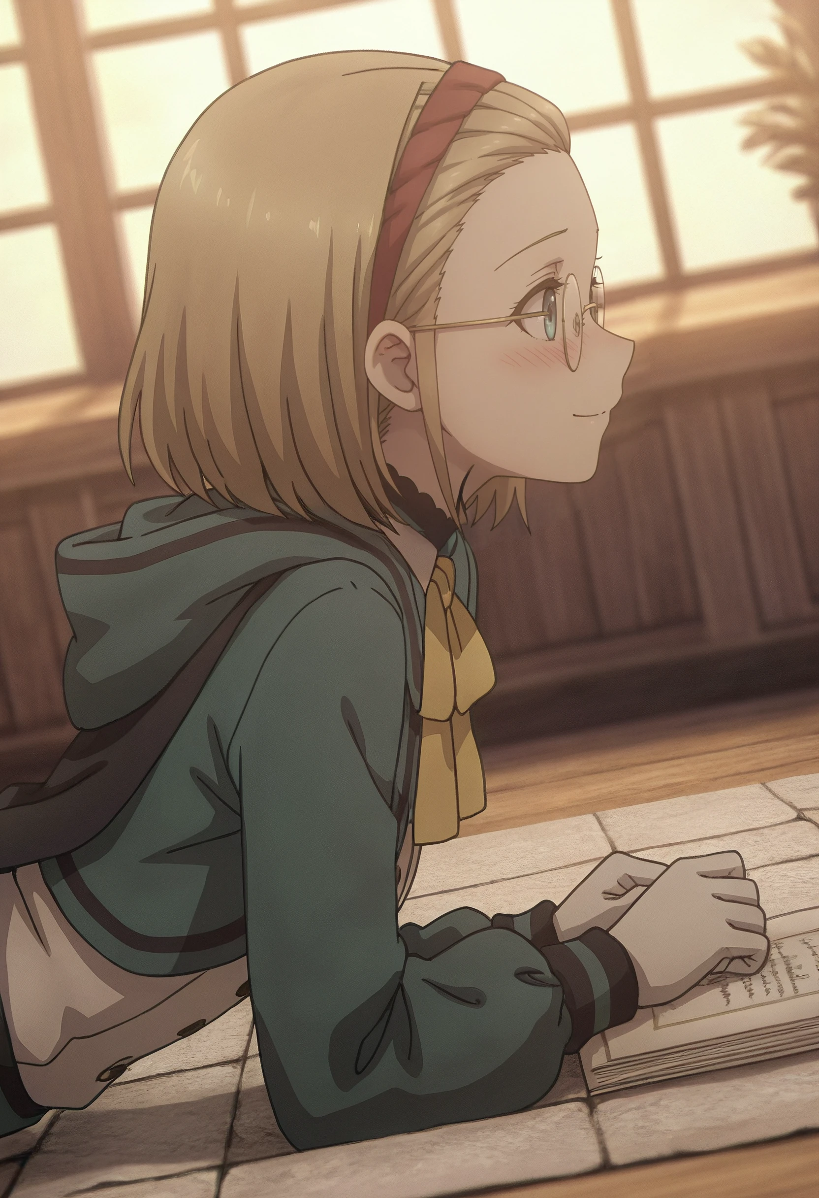 SWCMaybell, glasses, short hair, round eyewear, brown hair, blue eyes, red hairband,