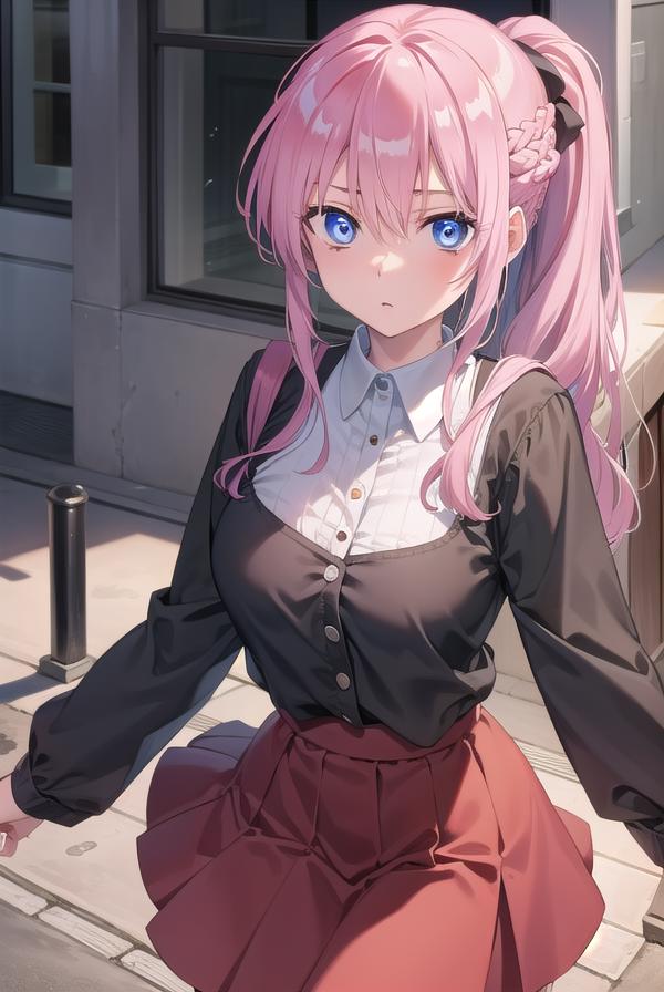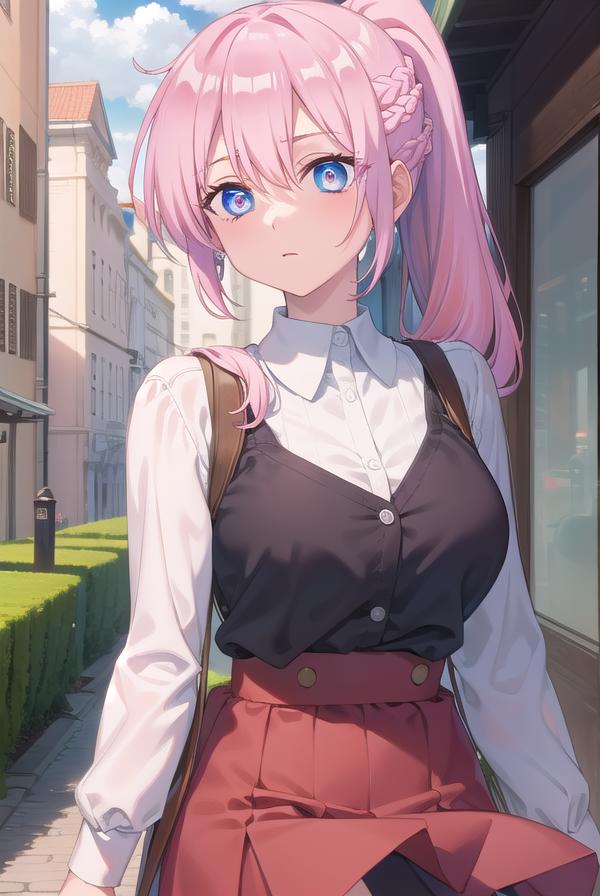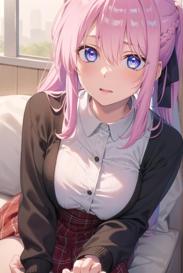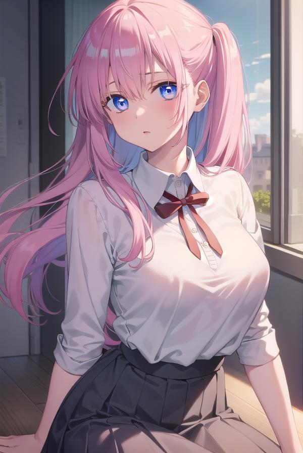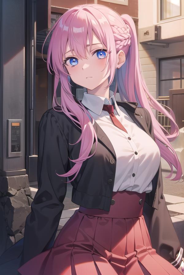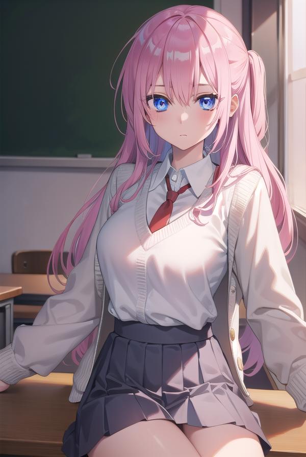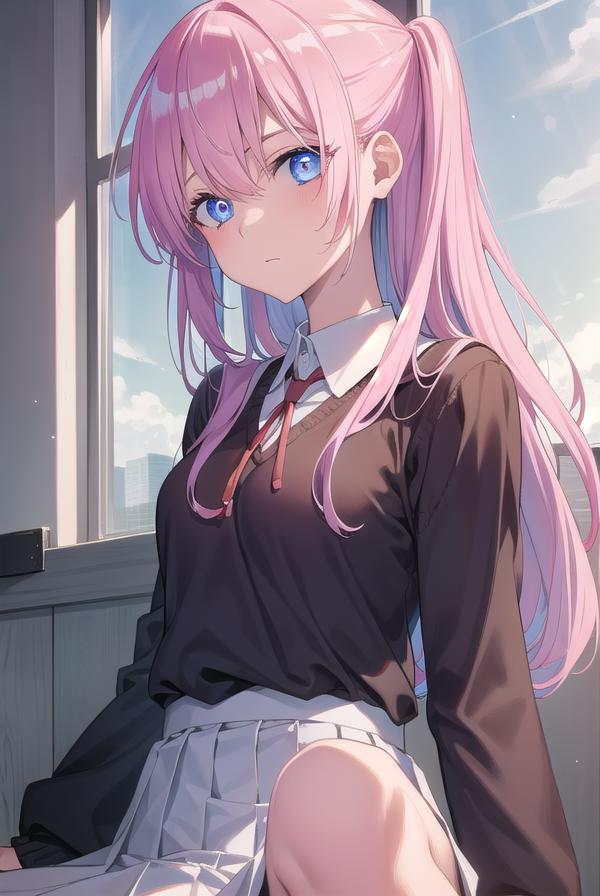 miyako shikimori, long hair, blue eyes, hair between eyes, pink hair,