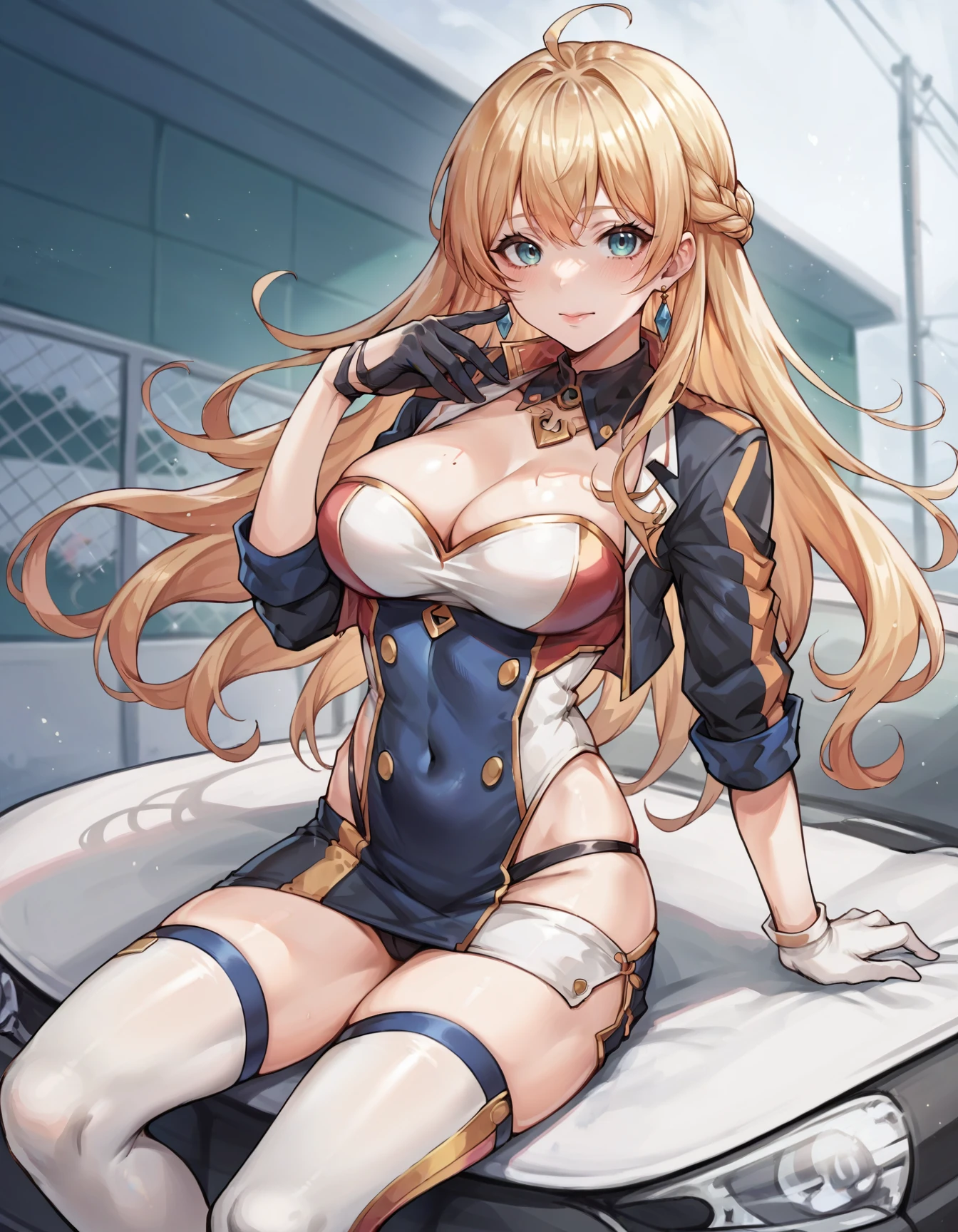 Waifu's always need new hobbies and yours decided she wanted to be a racing model and take pictures next to some fancy car! This Locon helps make that happen by generally providing the framework for such a picture, while also giving you the flexibility to describe an outfit (that will obviously be racer-fied).