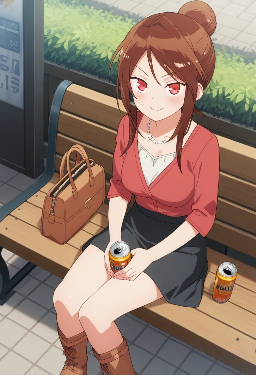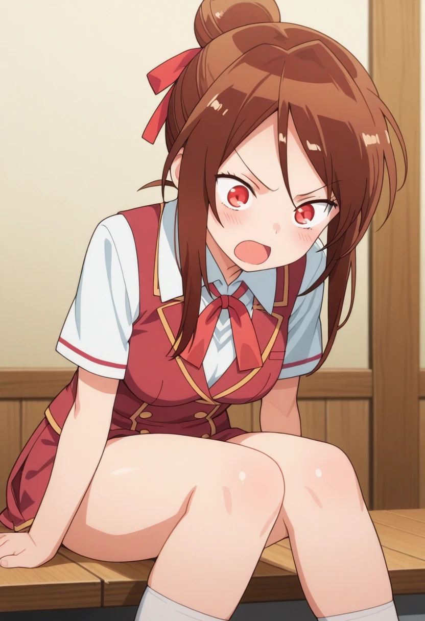 Trigger Words: sekijou sawako, brown hair, red eyes, hair bun, single hair bun